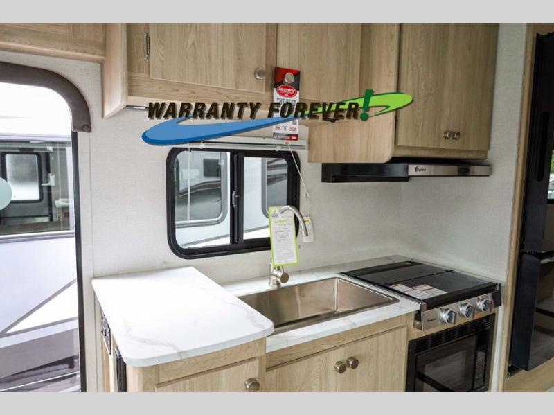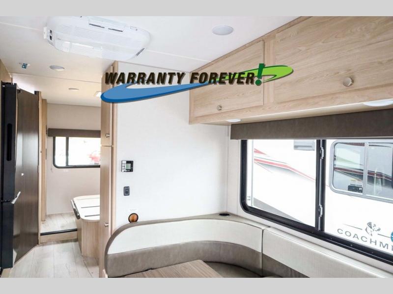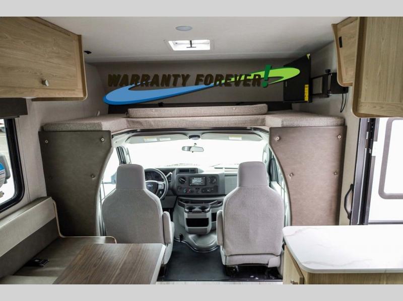 With each Leprechaun Class C gas motorhome by Coachmen you will enjoy "better" interior appointments, like the residential-sized beds, on-demand tankless water heater, and 15,000 BTU A/C. A dash radio and a backup monitor will let you easily navigate the open road like pro. There are also pleated night shades inside, along with premium vinyl flooring, a shower skylight, and USB charging ports to name a few comforts and conveniences. The Leprechaun is constructed with composite sidewall and cabover floor construction plus a seamless one-piece roof material for a durable motorhome made to last.