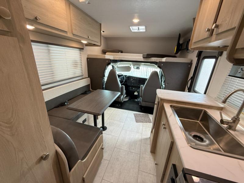 With each Leprechaun Class C gas motorhome by Coachmen you will enjoy "better" interior appointments, like the residential-sized beds, on-demand tankless water heater, and 15,000 BTU A/C. A dash radio and a backup monitor will let you easily navigate the open road like pro. There are also pleated night shades inside, along with premium vinyl flooring, a shower skylight, and USB charging ports to name a few comforts and conveniences. The Leprechaun is constructed with composite sidewall and cabover floor construction plus a seamless one-piece roof material for a durable motorhome made to last.