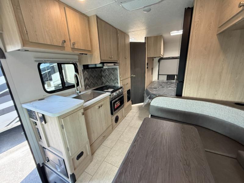 With each Leprechaun Class C gas motorhome by Coachmen you will enjoy "better" interior appointments, like the residential-sized beds, on-demand tankless water heater, and 15,000 BTU A/C. A dash radio and a backup monitor will let you easily navigate the open road like pro. There are also pleated night shades inside, along with premium vinyl flooring, a shower skylight, and USB charging ports to name a few comforts and conveniences. The Leprechaun is constructed with composite sidewall and cabover floor construction plus a seamless one-piece roof material for a durable motorhome made to last.