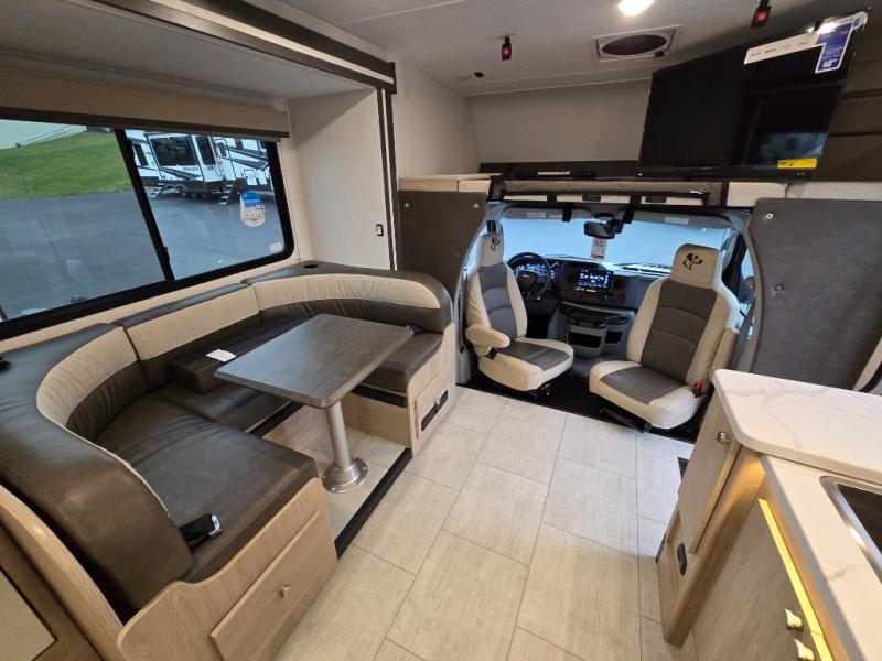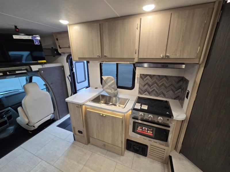 With each Leprechaun Class C gas motorhome by Coachmen you will enjoy "better" interior appointments, like the residential-sized beds, on-demand tankless water heater, and 15,000 BTU A/C. A dash radio and a backup monitor will let you easily navigate the open road like pro. There are also pleated night shades inside, along with premium vinyl flooring, a shower skylight, and USB charging ports to name a few comforts and conveniences. The Leprechaun is constructed with composite sidewall and cabover floor construction plus a seamless one-piece roof material for a durable motorhome made to last.