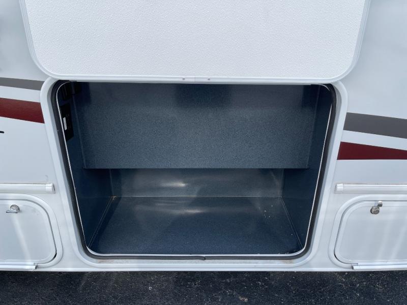 The worst thing you do could is pass up this Leprechaun Class C gas motorhome! This coach is filled with exceptionally helpful amenities, like the flip-down extension in the kitchen, the J-lounge with 18" extension, the full bathroom to stay clean throughout your trip. You have lots of great options with this coach because there is an optional outdoor kitchen table you can add as well as an optional outdoor entertainment center or optional power recliners. The two slides create extra space on the interior for you to relax, and the swing-arm TV will be fun to watch.