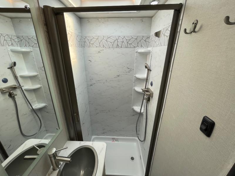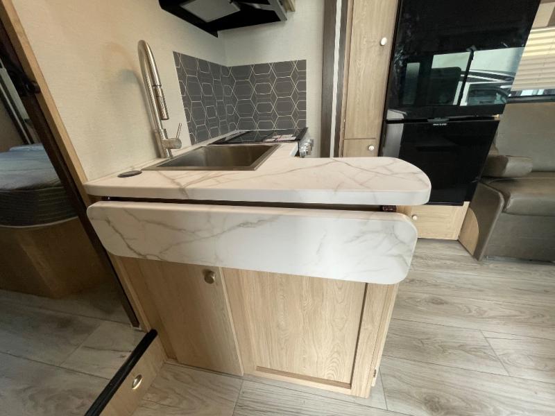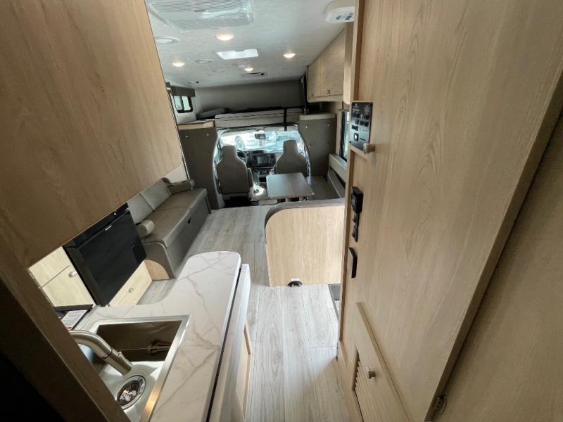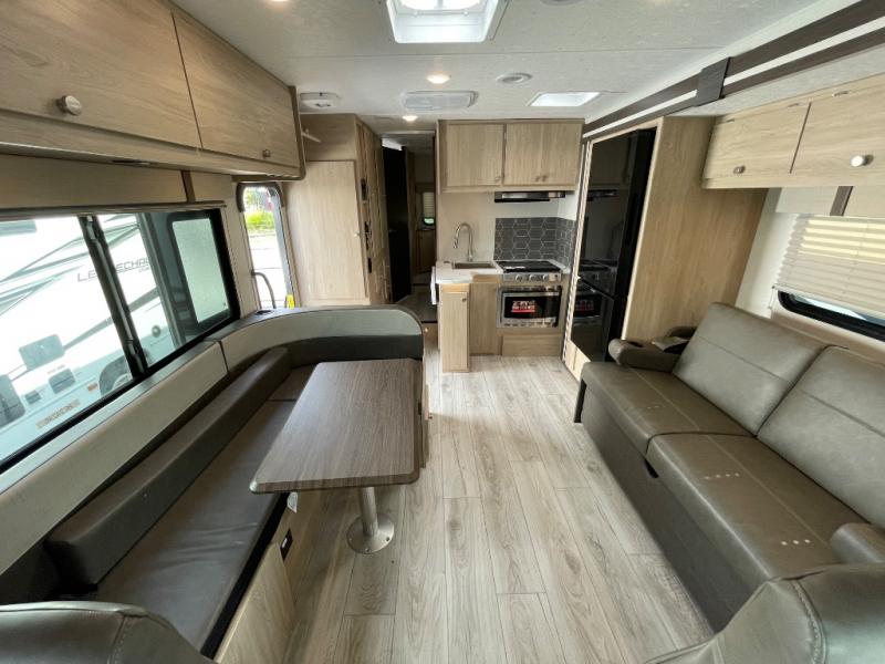 With each Leprechaun Class C gas motorhome by Coachmen you will enjoy "better" interior appointments, like the residential-sized beds, on-demand tankless water heater, and 15,000 BTU A/C. A dash radio and a backup monitor will let you easily navigate the open road like pro. There are also pleated night shades inside, along with premium vinyl flooring, a shower skylight, and USB charging ports to name a few comforts and conveniences. The Leprechaun is constructed with composite sidewall and cabover floor construction plus a seamless one-piece roof material for a durable motorhome made to last.
