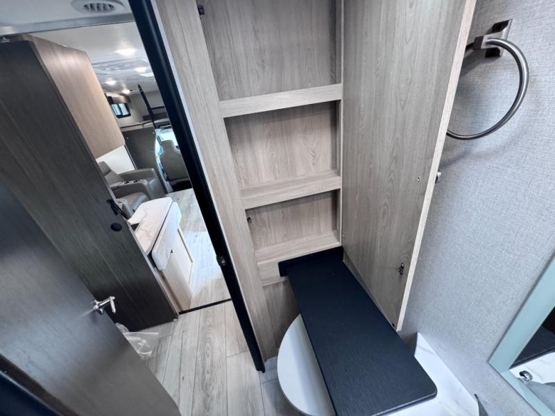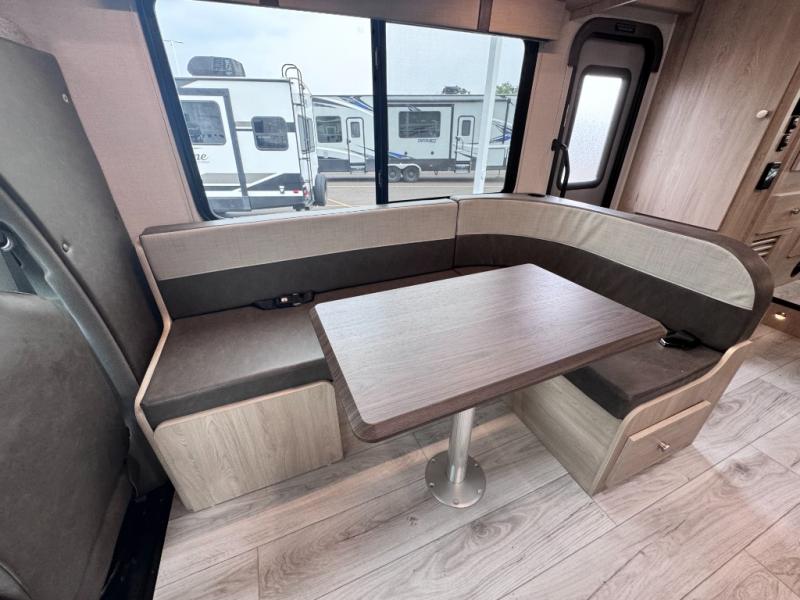 With each Leprechaun Class C gas motorhome by Coachmen you will enjoy "better" interior appointments, like the residential-sized beds, on-demand tankless water heater, and 15,000 BTU A/C. A dash radio and a backup monitor will let you easily navigate the open road like pro. There are also pleated night shades inside, along with premium vinyl flooring, a shower skylight, and USB charging ports to name a few comforts and conveniences. The Leprechaun is constructed with composite sidewall and cabover floor construction plus a seamless one-piece roof material for a durable motorhome made to last.