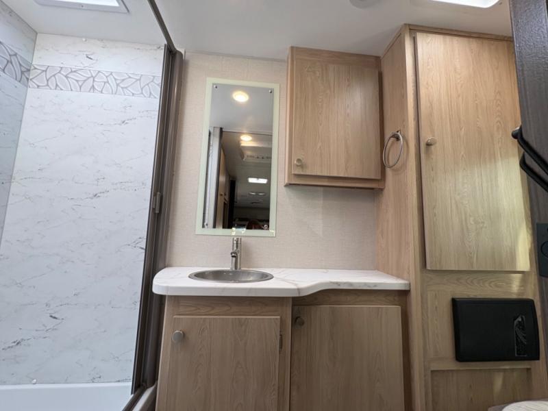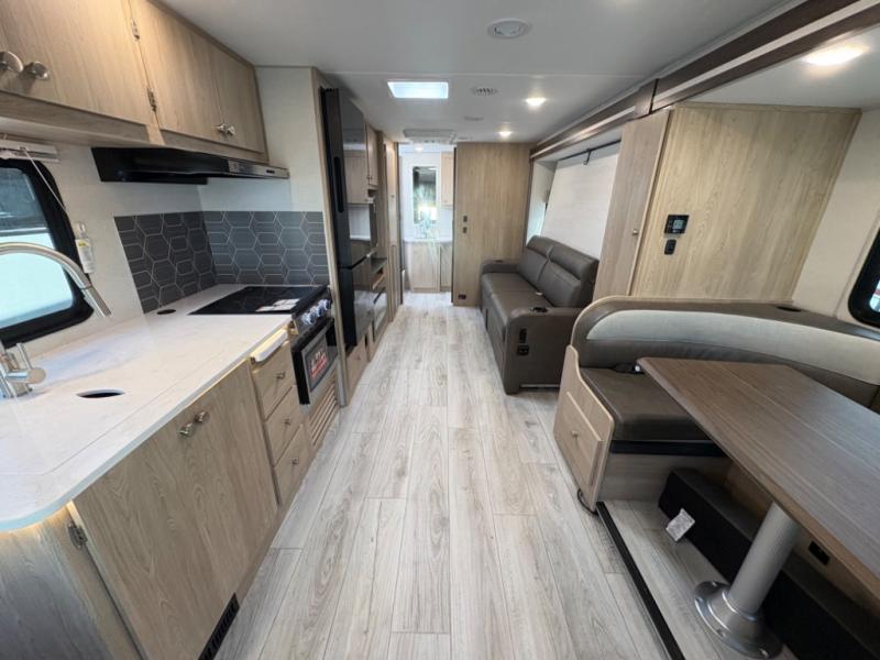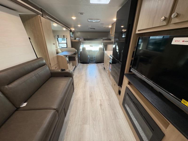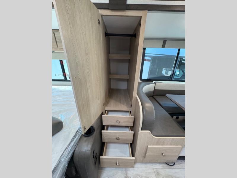 With each Leprechaun Class C gas motorhome by Coachmen you will enjoy "better" interior appointments, like the residential-sized beds, on-demand tankless water heater, and 15,000 BTU A/C. A dash radio and a backup monitor will let you easily navigate the open road like pro. There are also pleated night shades inside, along with premium vinyl flooring, a shower skylight, and USB charging ports to name a few comforts and conveniences. The Leprechaun is constructed with composite sidewall and cabover floor construction plus a seamless one-piece roof material for a durable motorhome made to last.