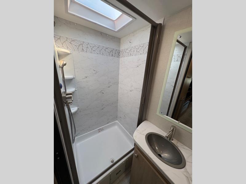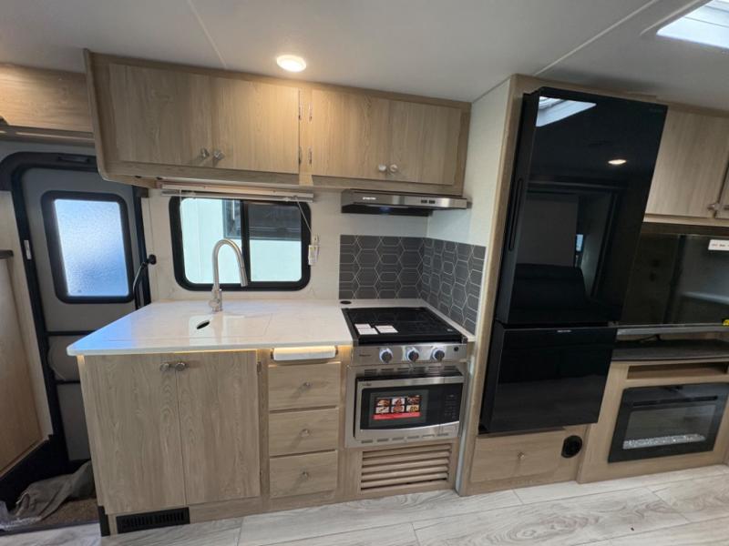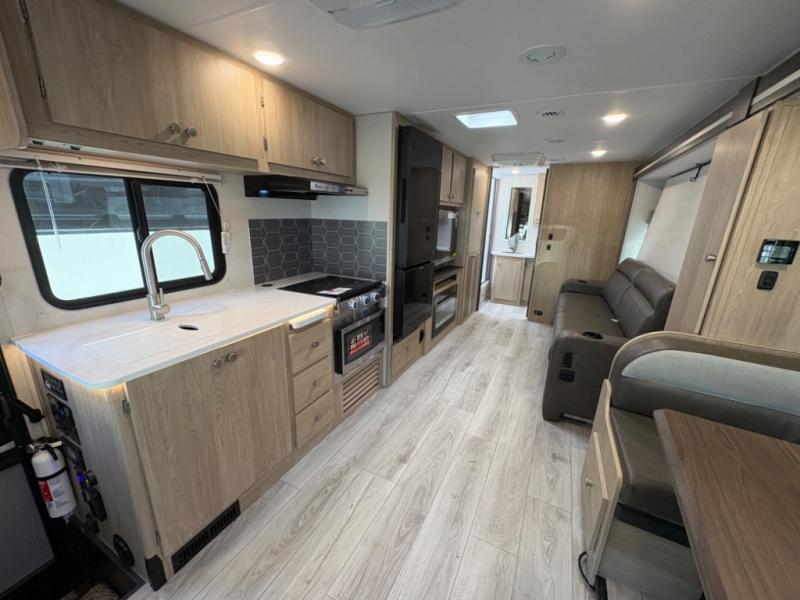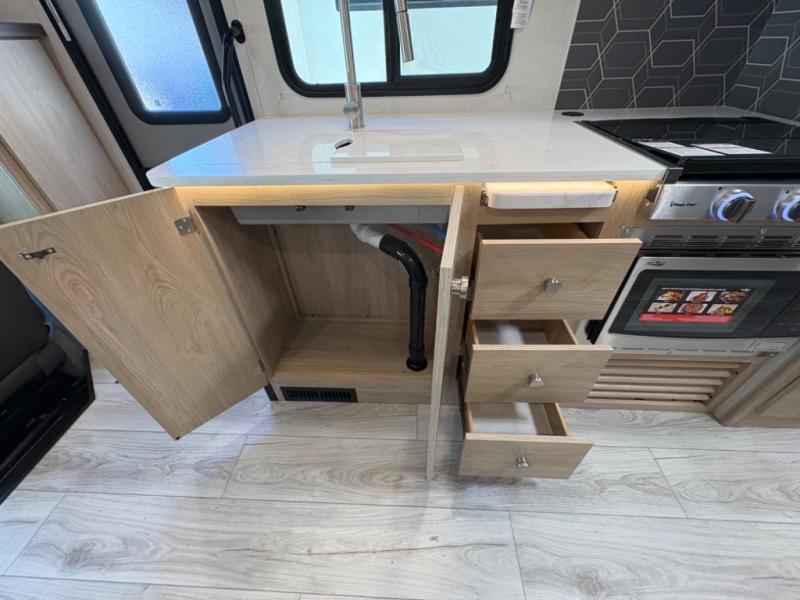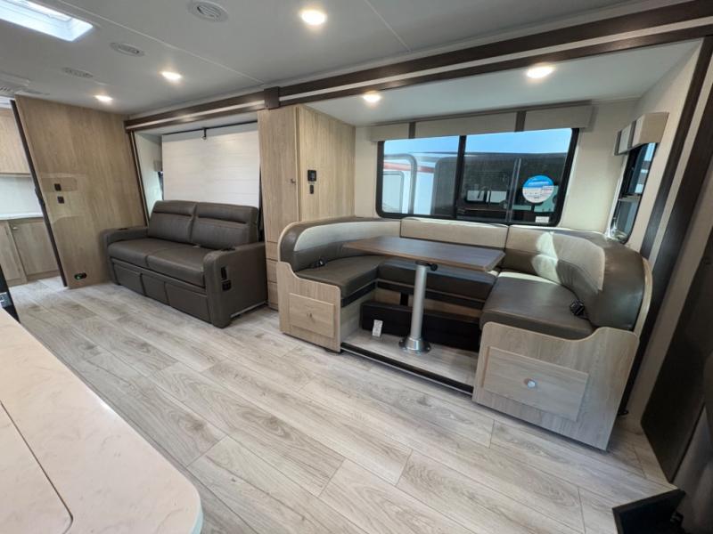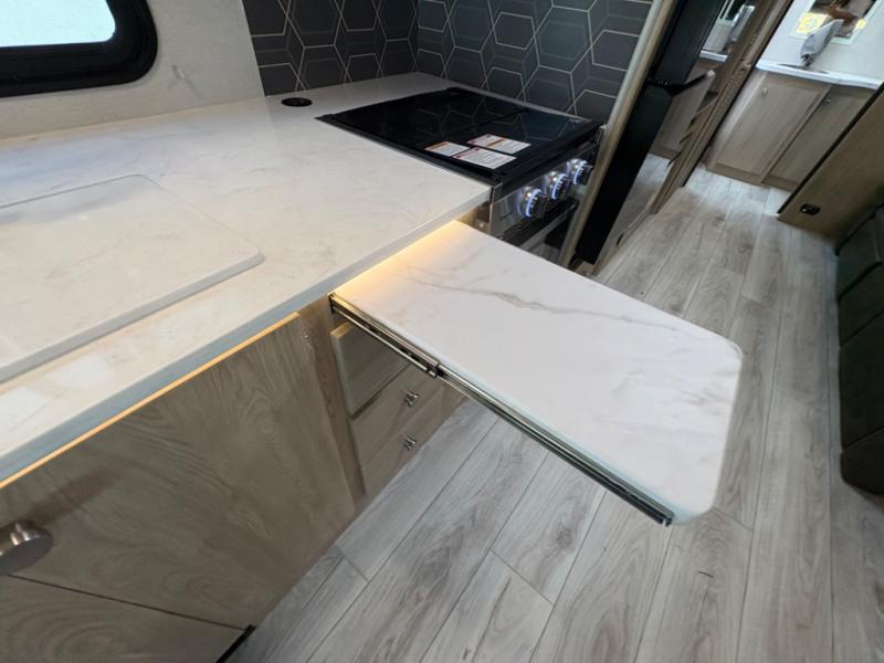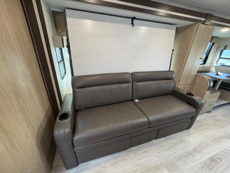 Your small family will love traveling in this motorhome! This coach is filled with exceptionally helpful amenities, like the pull-out extension in the kitchen, the 44" x 82" U-shaped dinette, the full bathroom with a 30" x 36" shower, and the optional fireplace. The chef will have an easy time cooking in the fully equipped kitchen, but also love cooking at the outside kitchen, plus there is outside storage for all of your gear and an optional outside TV for entertainment. You will get a good night's rest each night on the 72" x 74" king Murphy bed and the kiddos can sleep on the 57" x 80" bunk over cab!