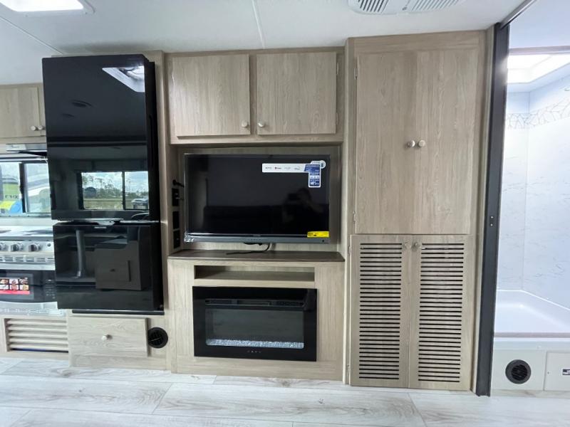 Your small family will love traveling in this motorhome! This coach is filled with exceptionally helpful amenities, like the pull-out extension in the kitchen, the 44" x 82" U-shaped dinette, the full bathroom with a 30" x 36" shower, and the optional fireplace. The chef will have an easy time cooking in the fully equipped kitchen, but also love cooking at the outside kitchen, plus there is outside storage for all of your gear and an optional outside TV for entertainment. You will get a good night's rest each night on the 72" x 74" king Murphy bed and the kiddos can sleep on the 57" x 80" bunk over cab!