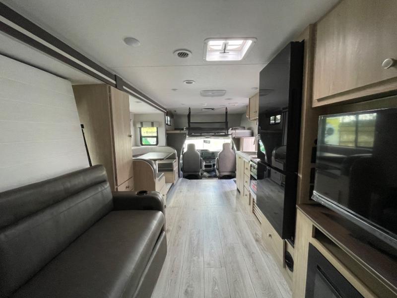 With each Leprechaun Class C gas motorhome by Coachmen you will enjoy "better" interior appointments, like the residential-sized beds, on-demand tankless water heater, and 15,000 BTU A/C. A dash radio and a backup monitor will let you easily navigate the open road like pro. There are also pleated night shades inside, along with premium vinyl flooring, a shower skylight, and USB charging ports to name a few comforts and conveniences. The Leprechaun is constructed with composite sidewall and cabover floor construction plus a seamless one-piece roof material for a durable motorhome made to last.