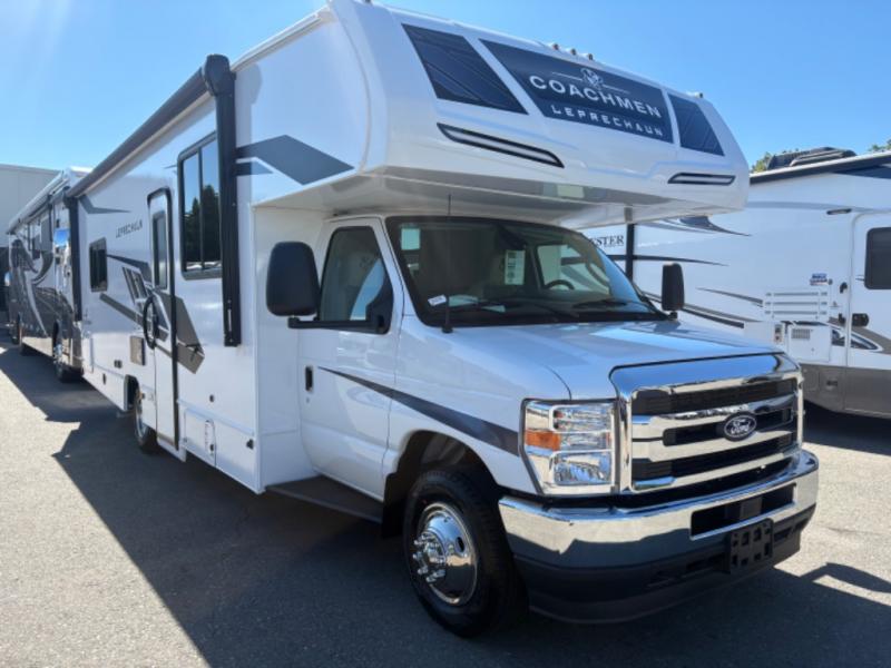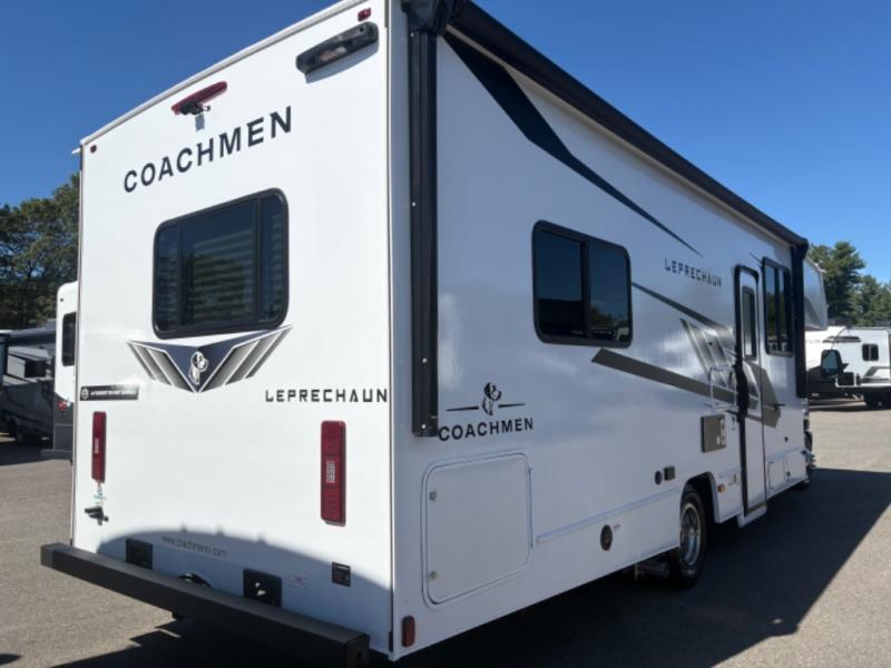 With each Leprechaun Class C gas motorhome by Coachmen you will enjoy "better" interior appointments, like the residential-sized beds, on-demand tankless water heater, and 15,000 BTU A/C. A dash radio and a backup monitor will let you easily navigate the open road like pro. There are also pleated night shades inside, along with premium vinyl flooring, a shower skylight, and USB charging ports to name a few comforts and conveniences. The Leprechaun is constructed with composite sidewall and cabover floor construction plus a seamless one-piece roof material for a durable motorhome made to last.