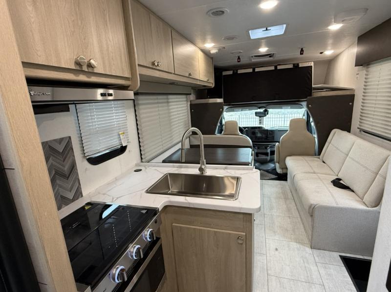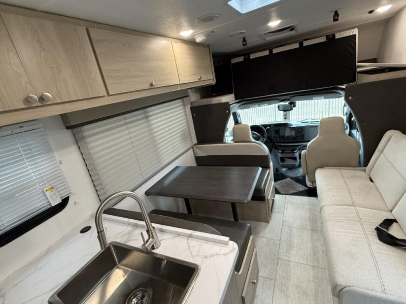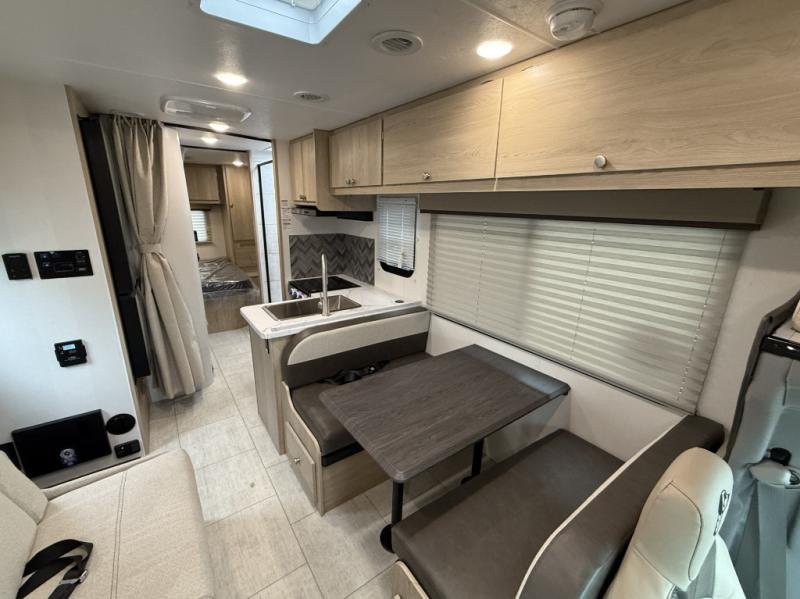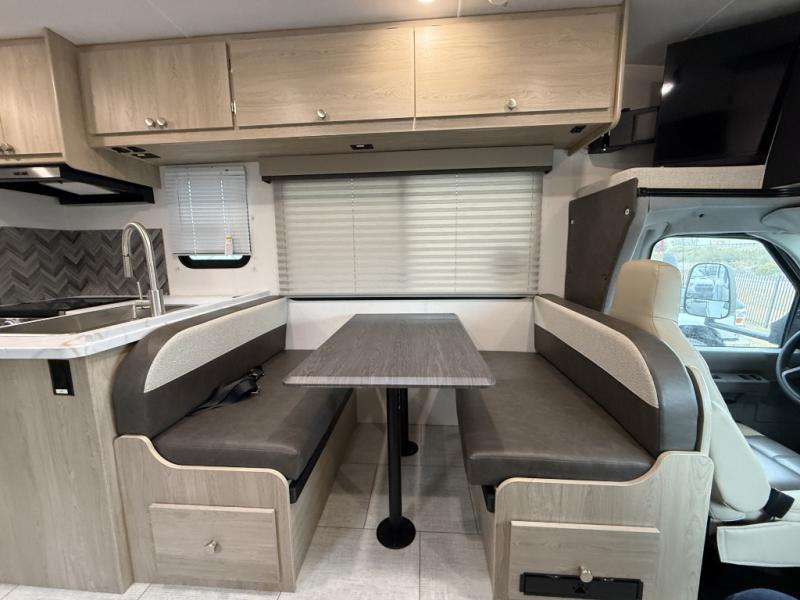 With each Leprechaun Class C gas motorhome by Coachmen you will enjoy "better" interior appointments, like the residential-sized beds, on-demand tankless water heater, and 15,000 BTU A/C. A dash radio and a backup monitor will let you easily navigate the open road like pro. There are also pleated night shades inside, along with premium vinyl flooring, a shower skylight, and USB charging ports to name a few comforts and conveniences. The Leprechaun is constructed with composite sidewall and cabover floor construction plus a seamless one-piece roof material for a durable motorhome made to last.