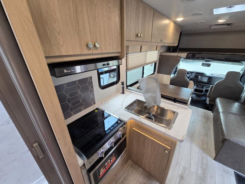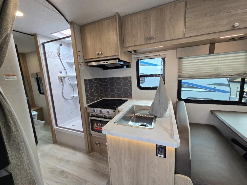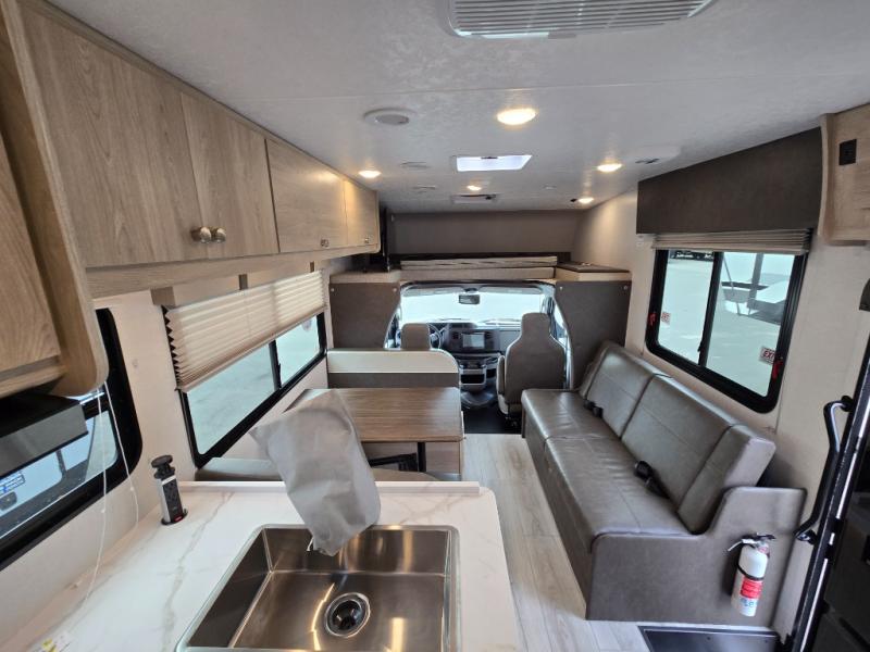 With each Leprechaun Class C gas motorhome by Coachmen you will enjoy "better" interior appointments, like the residential-sized beds, on-demand tankless water heater, and 15,000 BTU A/C. A dash radio and a backup monitor will let you easily navigate the open road like pro. There are also pleated night shades inside, along with premium vinyl flooring, a shower skylight, and USB charging ports to name a few comforts and conveniences. The Leprechaun is constructed with composite sidewall and cabover floor construction plus a seamless one-piece roof material for a durable motorhome made to last.