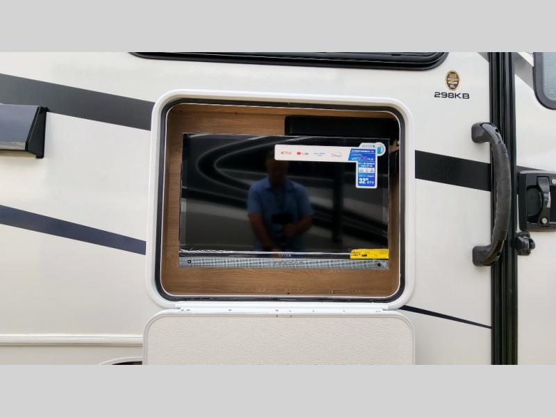 Take in the charm and style found on this Leprechaun Class C gas motorhome! The king bed slide is the perfect complement to the rear master suite, and the 44" x 76" J-lounge with 18" extension and 62" sofa are excellent additions to the living area. The kitchen has a three-burner cooktop with cover as well as a microwave oven for preparing easy meals. The 21' power awning will provide protection when you're enjoying time outdoors, and you might want to add the optional outside entertainment center for movie nights!
