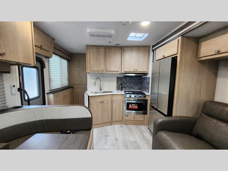 With each Leprechaun Class C gas motorhome by Coachmen you will enjoy "better" interior appointments, like the residential-sized beds, on-demand tankless water heater, and 15,000 BTU A/C. A dash radio and a backup monitor will let you easily navigate the open road like pro. There are also pleated night shades inside, along with premium vinyl flooring, a shower skylight, and USB charging ports to name a few comforts and conveniences. The Leprechaun is constructed with composite sidewall and cabover floor construction plus a seamless one-piece roof material for a durable motorhome made to last.