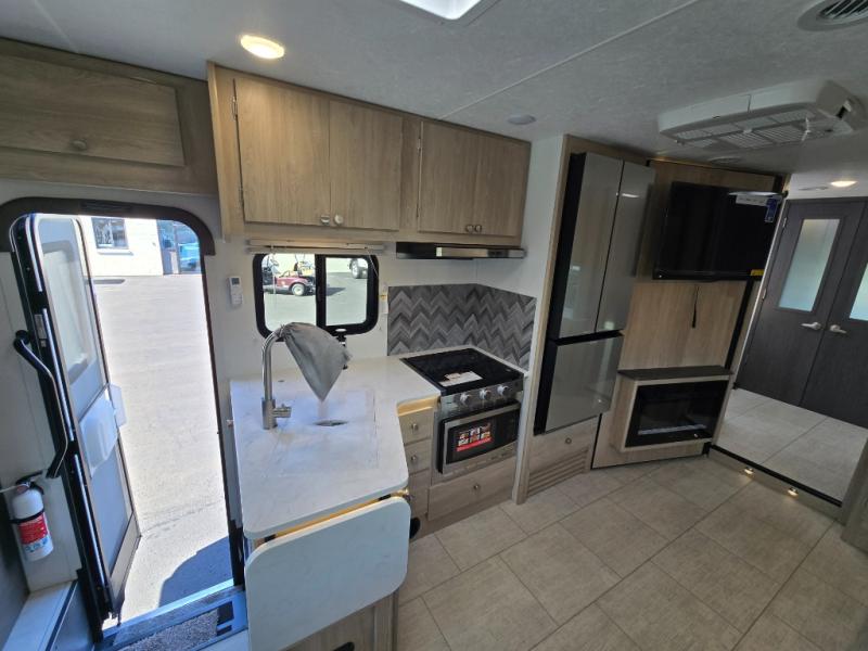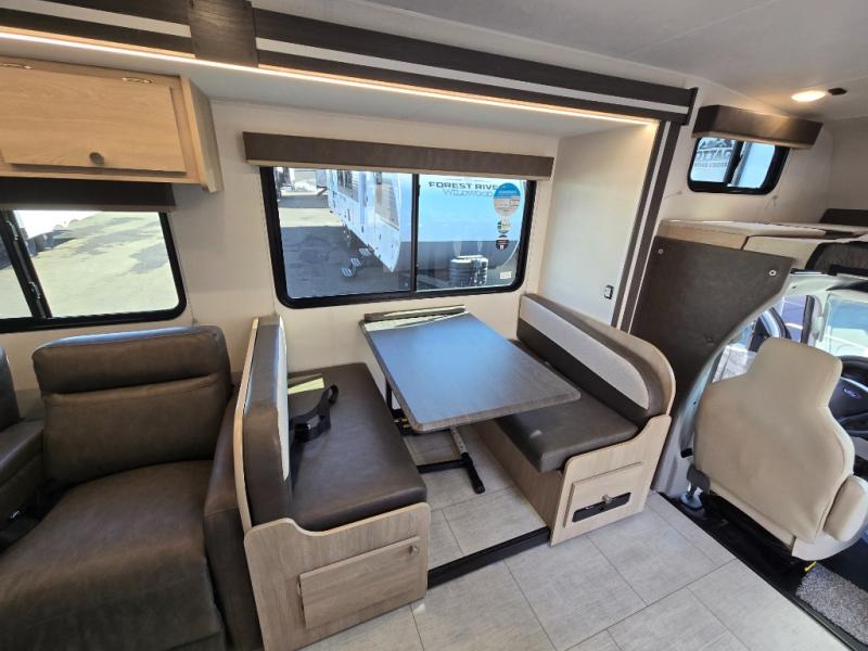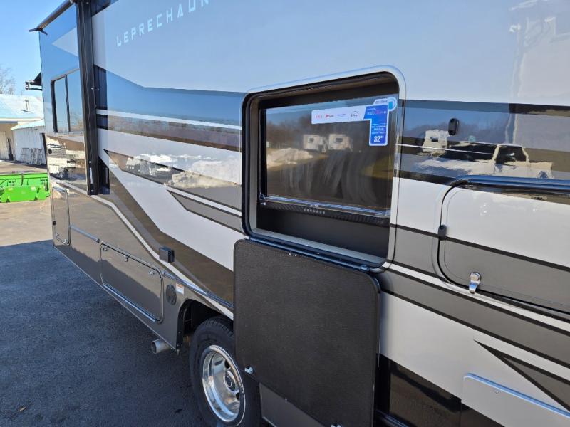 With each Leprechaun Class C gas motorhome by Coachmen you will enjoy "better" interior appointments, like the residential-sized beds, on-demand tankless water heater, and 15,000 BTU A/C. A dash radio and a backup monitor will let you easily navigate the open road like pro. There are also pleated night shades inside, along with premium vinyl flooring, a shower skylight, and USB charging ports to name a few comforts and conveniences. The Leprechaun is constructed with composite sidewall and cabover floor construction plus a seamless one-piece roof material for a durable motorhome made to last.