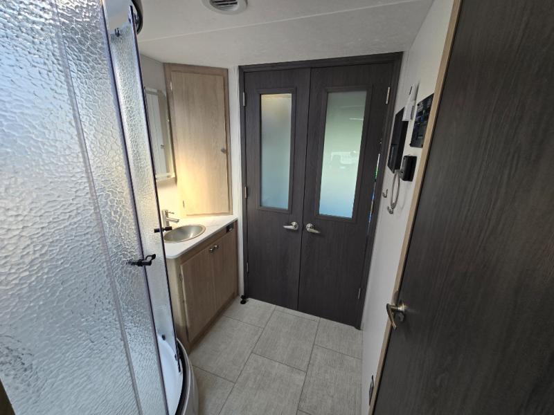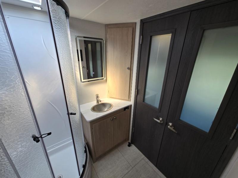 Have you been looking for privacy when sleeping and getting dressed in your next coach? This Leprechaun Class C gas motorhome offers a private rear bedroom with a walk-around king bed, a bunk over the cab for the kids, and furniture that doubles as sleeping accommodations for guests. The walk through toilet and sink with shower has quick access from either the living area or the bedroom making it flow better! Your family will love having a sofa and a booth dinette for relaxing, eating meals, playing games, or enjoying one another's company throughout your trip.