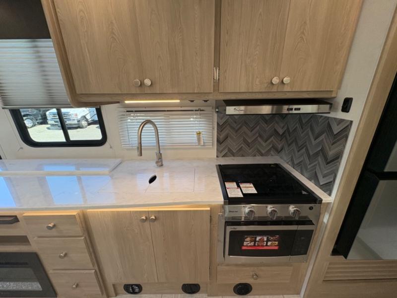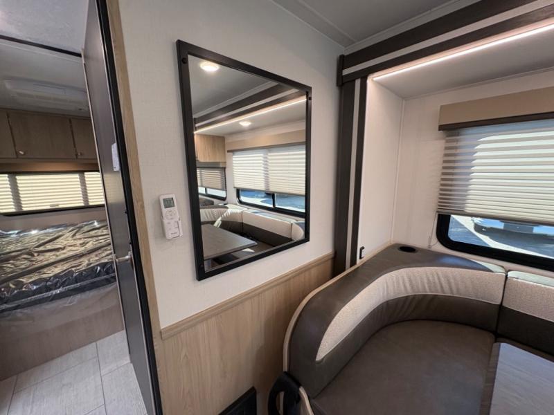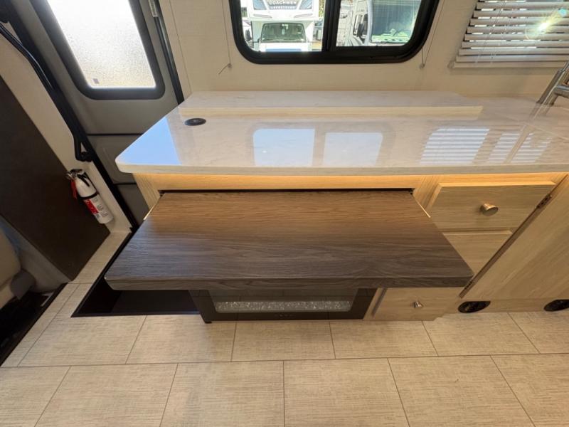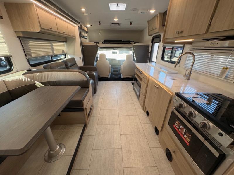 Luxury touches like solid-surface countertops, LED lighting, and a premium entertainment system give this coach a truly upscale feel. You’ll also appreciate the roomy bathroom, climate-controlled comfort, and the high-quality construction that makes the Leprechaun one of the most trusted names in Class C RVs.