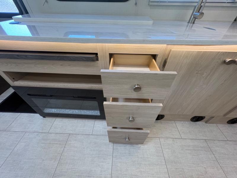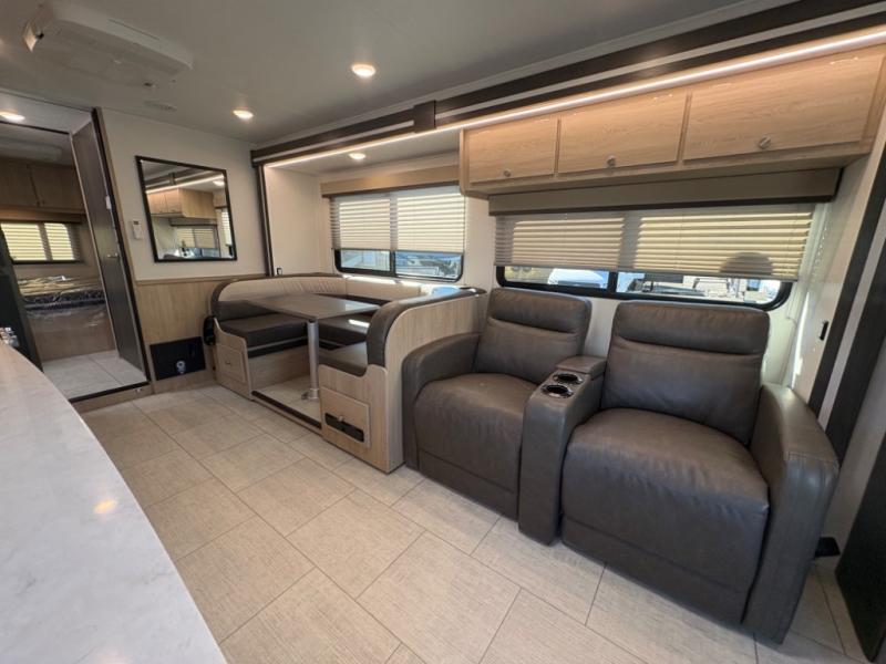 Outside, the adventure continues with a power awning with LED lights, large pass-through storage, an available outdoor entertainment center, and durable exterior construction designed to stand up to the elements. From long cross-country trips to weekend getaways, this motorhome is built to help you explore more — with ease, style, and confidence.