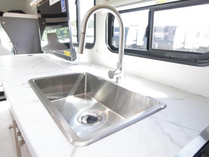 With its composite sidewalls, seamless one-piece roof, and cabover floor construction, the Leprechaun is made for years of adventure. Plus, the dash radio and backup monitor make navigation easy and stress-free.