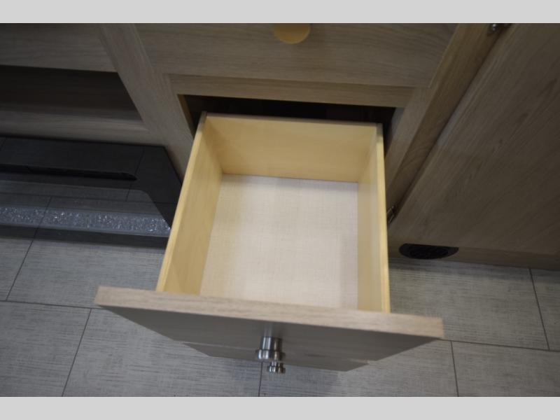 • Abundant interior storage, including overhead cabinets, drawers, closets, and kitchen organization solutions
