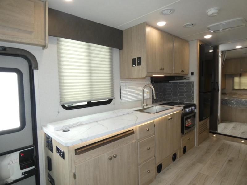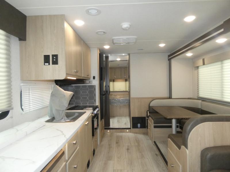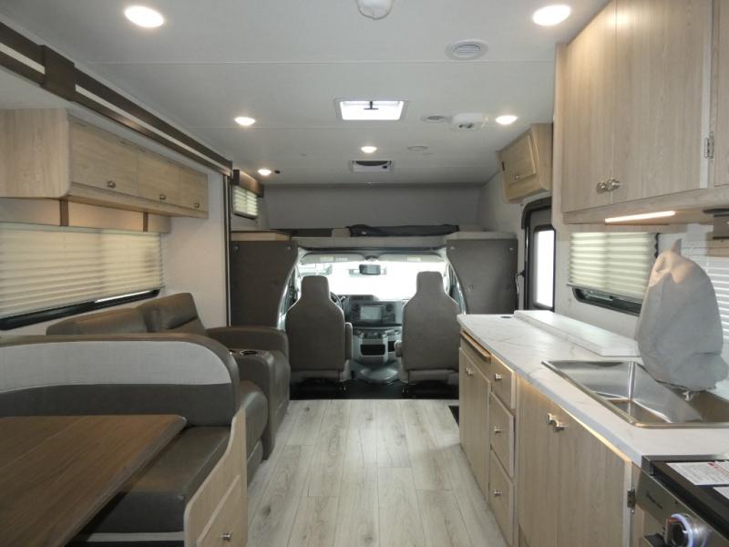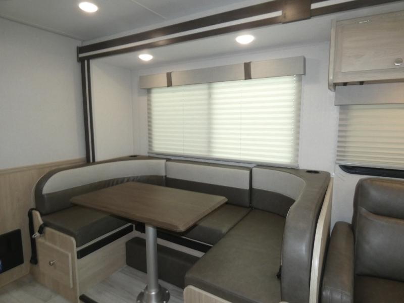 With each Leprechaun Class C gas motorhome by Coachmen you will enjoy "better" interior appointments, like the residential-sized beds, on-demand tankless water heater, and 15,000 BTU A/C. A dash radio and a backup monitor will let you easily navigate the open road like pro. There are also pleated night shades inside, along with premium vinyl flooring, a shower skylight, and USB charging ports to name a few comforts and conveniences. The Leprechaun is constructed with composite sidewall and cabover floor construction plus a seamless one-piece roof material for a durable motorhome made to last.