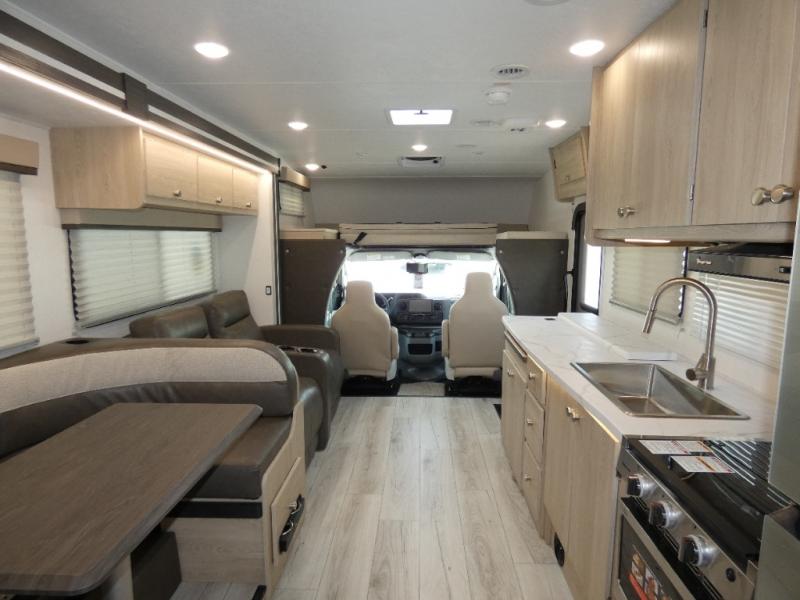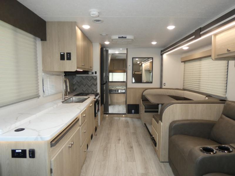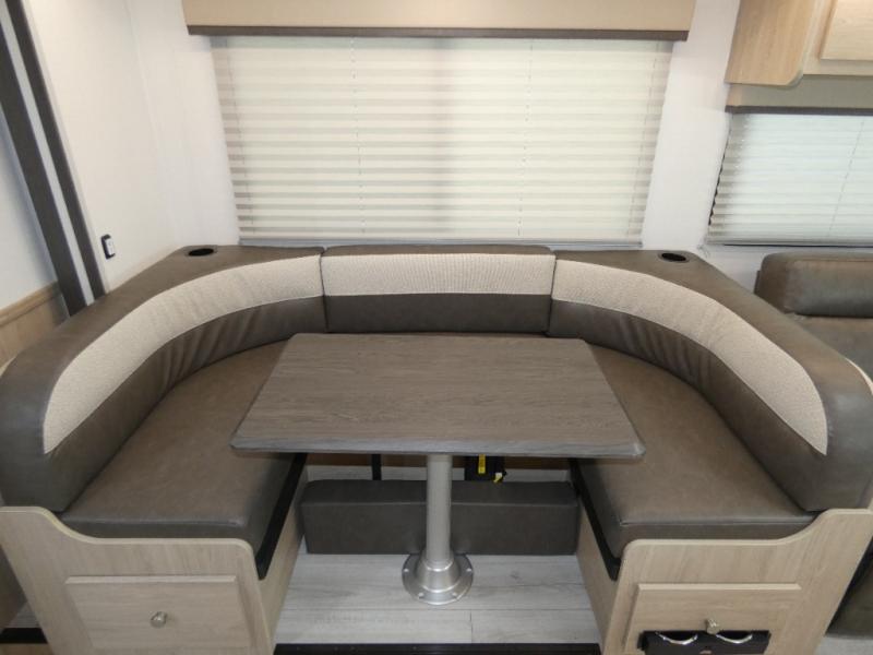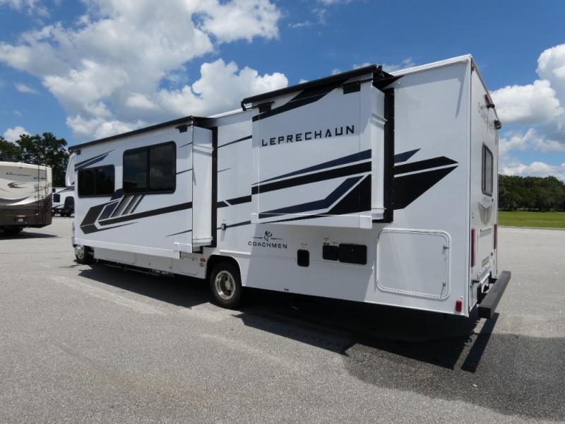 With each Leprechaun Class C gas motorhome by Coachmen you will enjoy "better" interior appointments, like the residential-sized beds, on-demand tankless water heater, and 15,000 BTU A/C. A dash radio and a backup monitor will let you easily navigate the open road like pro. There are also pleated night shades inside, along with premium vinyl flooring, a shower skylight, and USB charging ports to name a few comforts and conveniences. The Leprechaun is constructed with composite sidewall and cabover floor construction plus a seamless one-piece roof material for a durable motorhome made to last.
