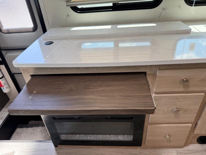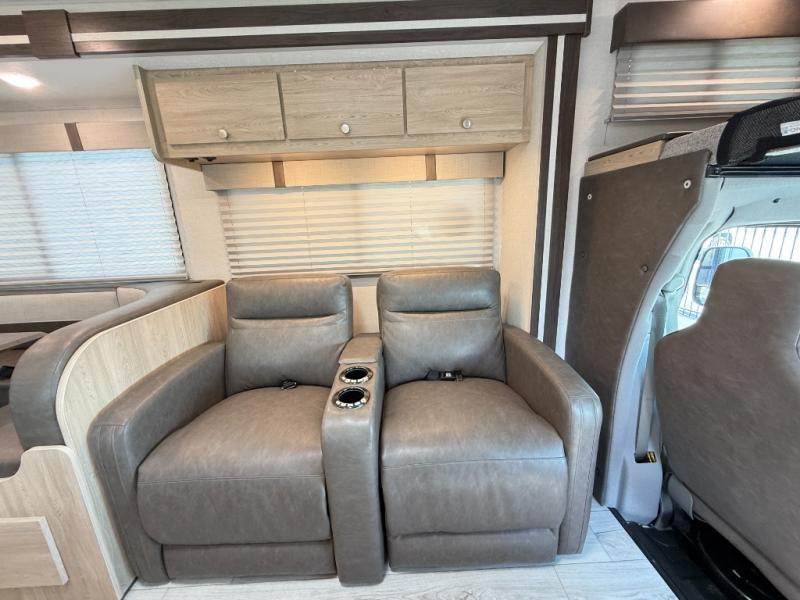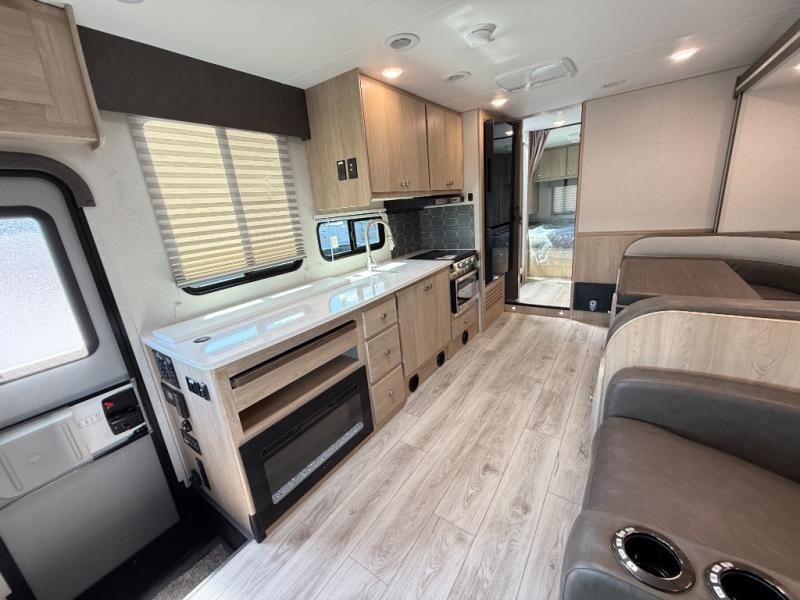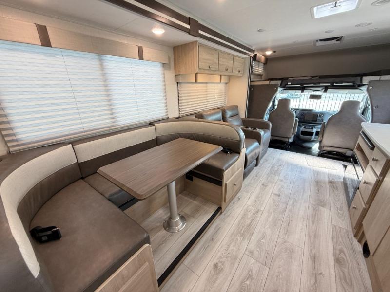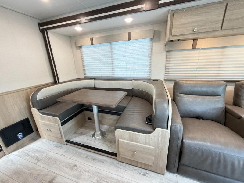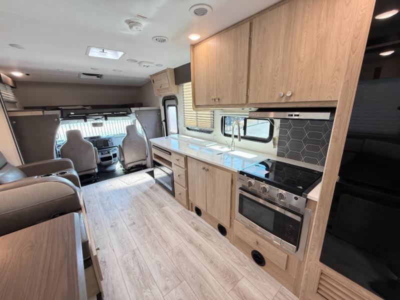 With each Leprechaun Class C gas motorhome by Coachmen you will enjoy "better" interior appointments, like the residential-sized beds, on-demand tankless water heater, and 15,000 BTU A/C. A dash radio and a backup monitor will let you easily navigate the open road like pro. There are also pleated night shades inside, along with premium vinyl flooring, a shower skylight, and USB charging ports to name a few comforts and conveniences. The Leprechaun is constructed with composite sidewall and cabover floor construction plus a seamless one-piece roof material for a durable motorhome made to last.
