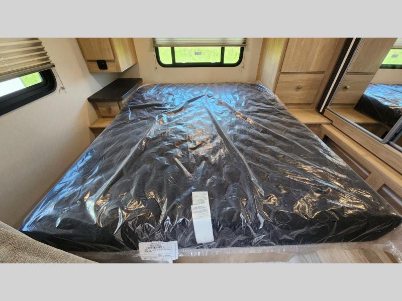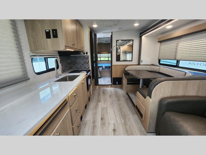 With each Leprechaun Class C gas motorhome by Coachmen you will enjoy "better" interior appointments, like the residential-sized beds, on-demand tankless water heater, and 15,000 BTU A/C. A dash radio and a backup monitor will let you easily navigate the open road like pro. There are also pleated night shades inside, along with premium vinyl flooring, a shower skylight, and USB charging ports to name a few comforts and conveniences. The Leprechaun is constructed with composite sidewall and cabover floor construction plus a seamless one-piece roof material for a durable motorhome made to last.