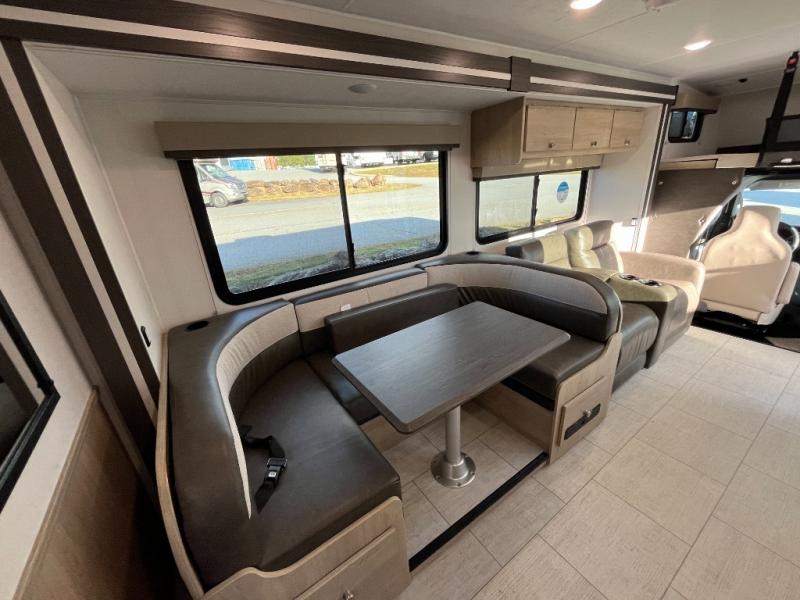 With each Leprechaun Class C gas motorhome by Coachmen you will enjoy "better" interior appointments, like the residential-sized beds, on-demand tankless water heater, and 15,000 BTU A/C. A dash radio and a backup monitor will let you easily navigate the open road like pro. There are also pleated night shades inside, along with premium vinyl flooring, a shower skylight, and USB charging ports to name a few comforts and conveniences. The Leprechaun is constructed with composite sidewall and cabover floor construction plus a seamless one-piece roof material for a durable motorhome made to last.