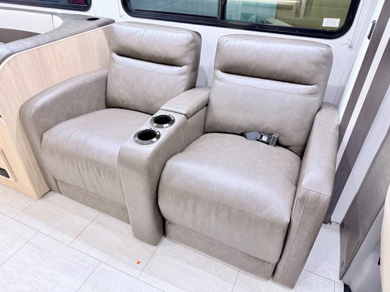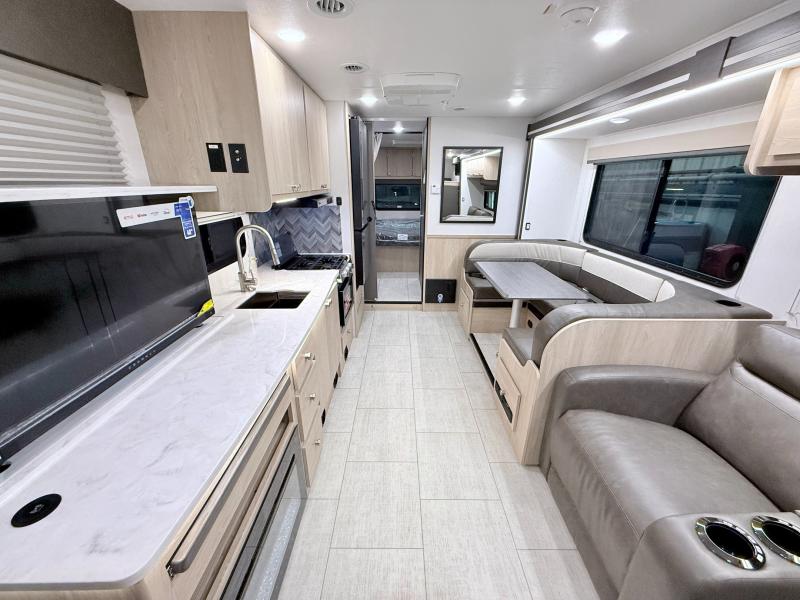 With each Leprechaun Class C gas motorhome by Coachmen you will enjoy "better" interior appointments, like the residential-sized beds, on-demand tankless water heater, and 15,000 BTU A/C. A dash radio and a backup monitor will let you easily navigate the open road like pro. There are also pleated night shades inside, along with premium vinyl flooring, a shower skylight, and USB charging ports to name a few comforts and conveniences. The Leprechaun is constructed with composite sidewall and cabover floor construction plus a seamless one-piece roof material for a durable motorhome made to last.