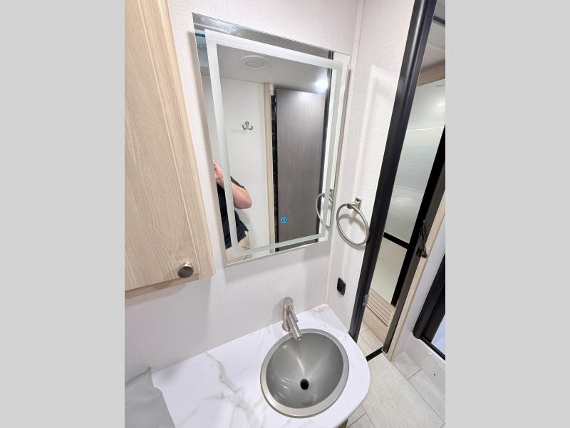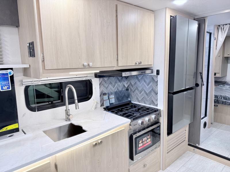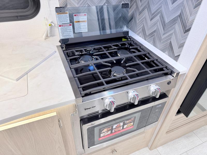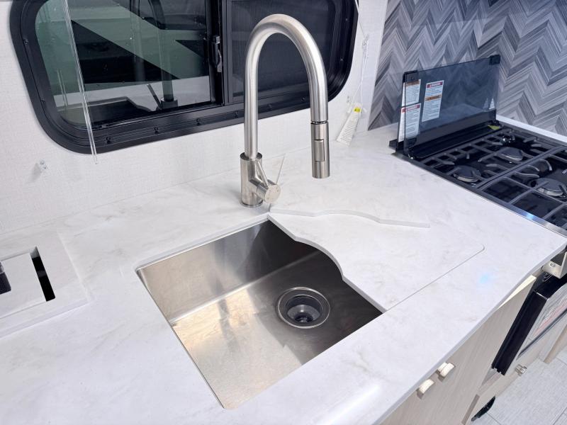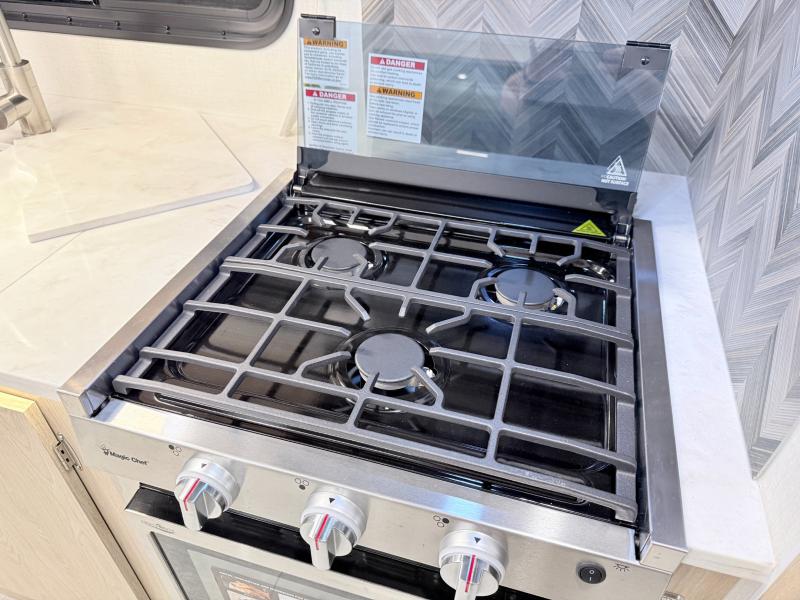 You'll have the time of your life in this Leprechaun Class C gas motorhome! There is a rear private bedroom with a queen-size bed and a wardrobe slide, and the bedroom is right next to the bathroom for convenience. Here you'll find a private toilet and sink with the shower right across the hall, and you can close off this space to make one big bathroom if you want! Out in the main living area, there is a large slide that holds the U-shaped dinette and sofa. These pieces of furniture sit directly across from the kitchen so that you can chat with the chef while preparing meals on the three-burner range or in the microwave. If you enjoy cooking outdoors, you might want to choose the optional camp kitchen!