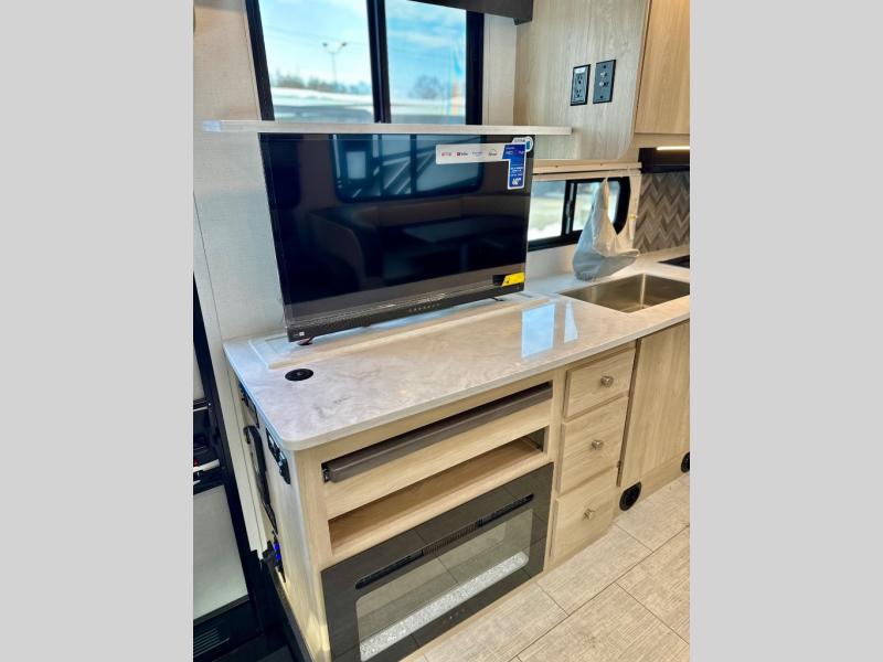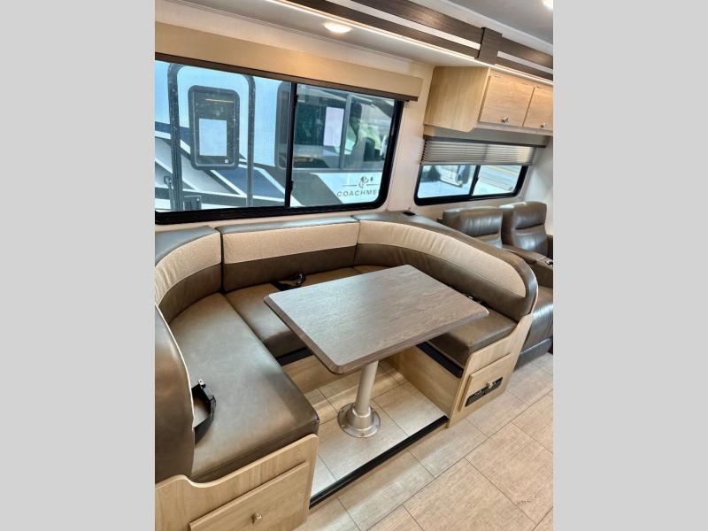With each Leprechaun Class C gas motorhome by Coachmen you will enjoy "better" interior appointments, like the residential-sized beds, on-demand tankless water heater, and 15,000 BTU A/C. A dash radio and a backup monitor will let you easily navigate the open road like pro. There are also pleated night shades inside, along with premium vinyl flooring, a shower skylight, and USB charging ports to name a few comforts and conveniences. The Leprechaun is constructed with composite sidewall and cabover floor construction plus a seamless one-piece roof material for a durable motorhome made to last.