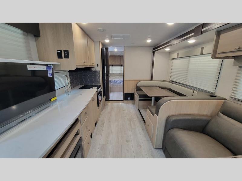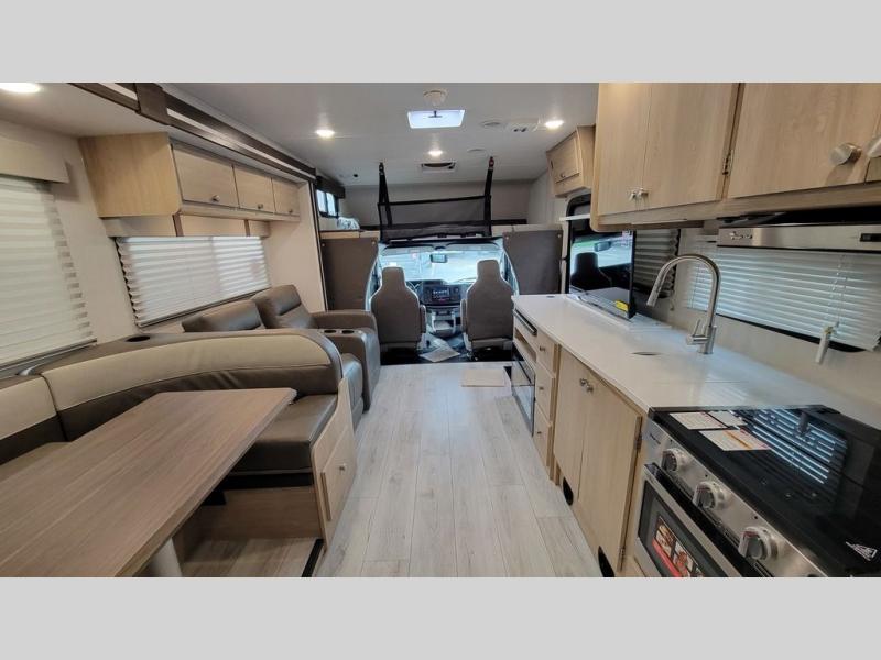 With each Leprechaun Class C gas motorhome by Coachmen you will enjoy "better" interior appointments, like the residential-sized beds, on-demand tankless water heater, and 15,000 BTU A/C. A dash radio and a backup monitor will let you easily navigate the open road like pro. There are also pleated night shades inside, along with premium vinyl flooring, a shower skylight, and USB charging ports to name a few comforts and conveniences. The Leprechaun is constructed with composite sidewall and cabover floor construction plus a seamless one-piece roof material for a durable motorhome made to last.