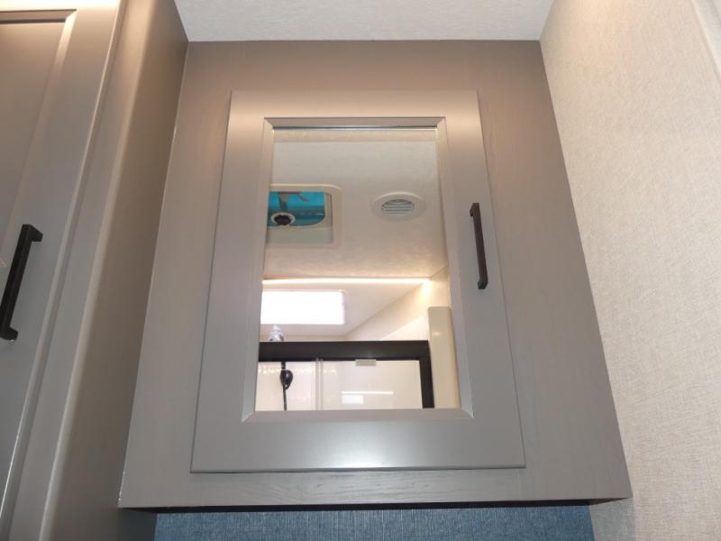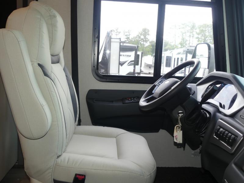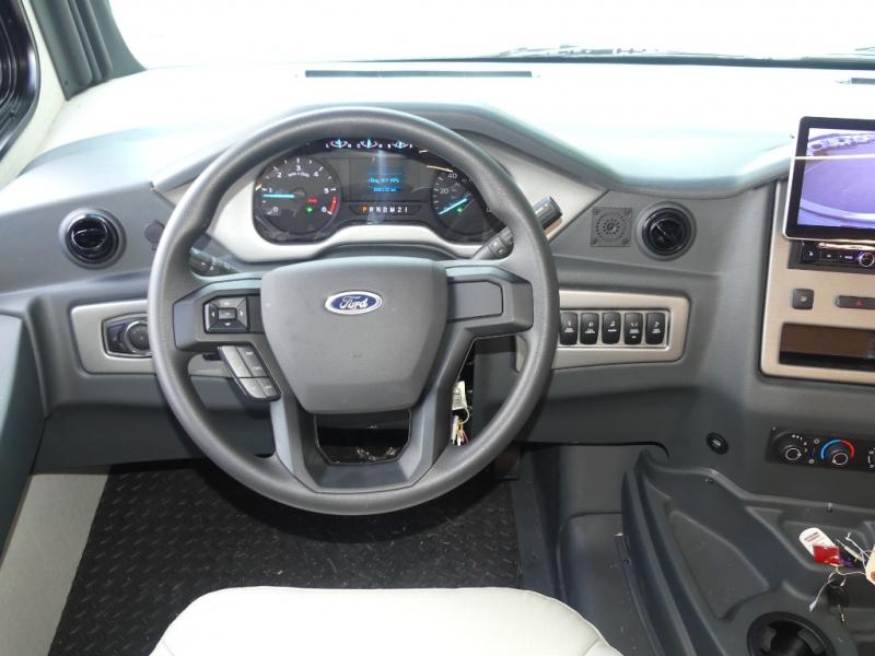 Each Mirada Class A gas motorhome by Coachmen is constructed with a crowned, laminated fiberglass roof with Azdel Superlite composite for added durability, along with high gloss gelcoat sidewalls. There is a 7.3L V8 engine on a Ford F53 chassis for power you can feel, and a 10" touch screen radio with AM/FM radio with Bluetooth capability. The generator, dual coach batteries, and 100W solar panel with a controller will meet all your power needs, and the automatic leveling jacks make setting up camp a breeze. Head inside to find premium linoleum throughout, hardwood cabinet doors, kitchen tile backsplash, and solar privacy shades throughout to name a few comforts. The open road is yours for the taking in a Mirada Class A gas motorhome!