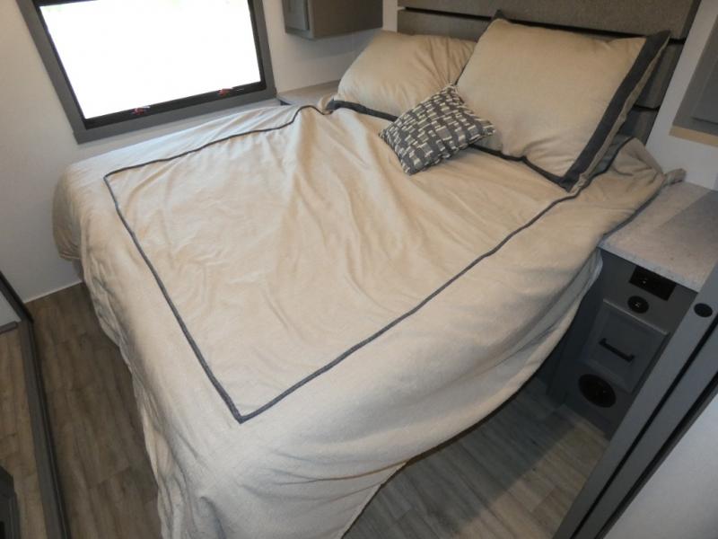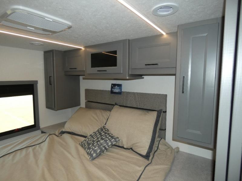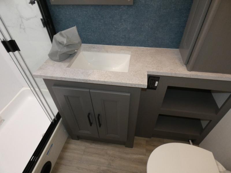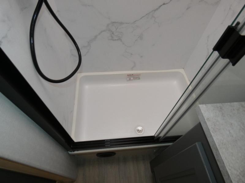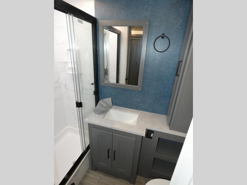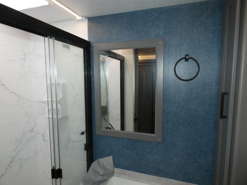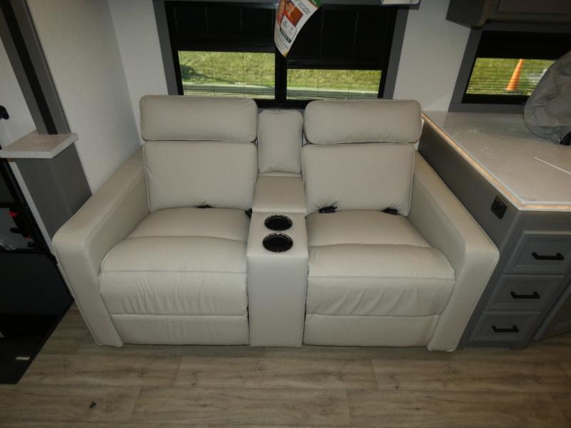 Your family will love this spacious coach for trips across the country or your local state park. The swivel captain's seats provide more seating, along with the sofa bed, theater seating, and booth dinette. There is a 50" Smart TV for rainy day movies and an exterior LED TV under the 20' power awning if the weather is cooperating. The full bath includes a glass shower door, plenty of counter space, and a shower skylight for added light, and the rear bedroom will be your oasis away from it all. Here, you'll find a king bed, a wardrobe for your clothes, plus a 32" LED TV.
