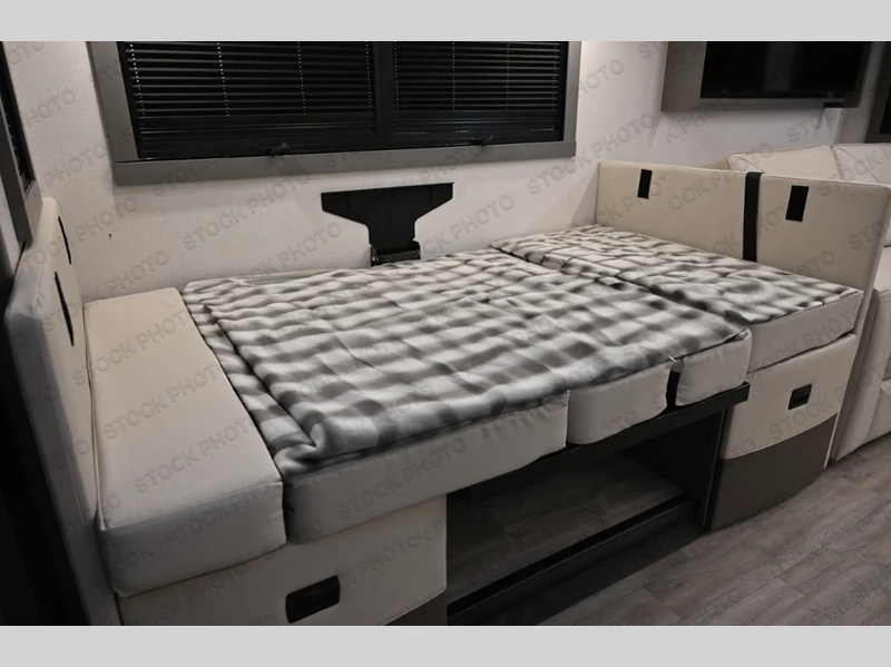 Your family will love this spacious coach for trips across the country or your local state park. The swivel captain's seats provide more seating, along with the sofa bed, theater seating, and booth dinette. There is a 50" Smart TV for rainy day movies and an exterior LED TV under the 20' power awning if the weather is cooperating. The full bath includes a glass shower door, plenty of counter space, and a shower skylight for added light, and the rear bedroom will be your oasis away from it all. Here, you'll find a king bed, a wardrobe for your clothes, plus a 32" LED TV.