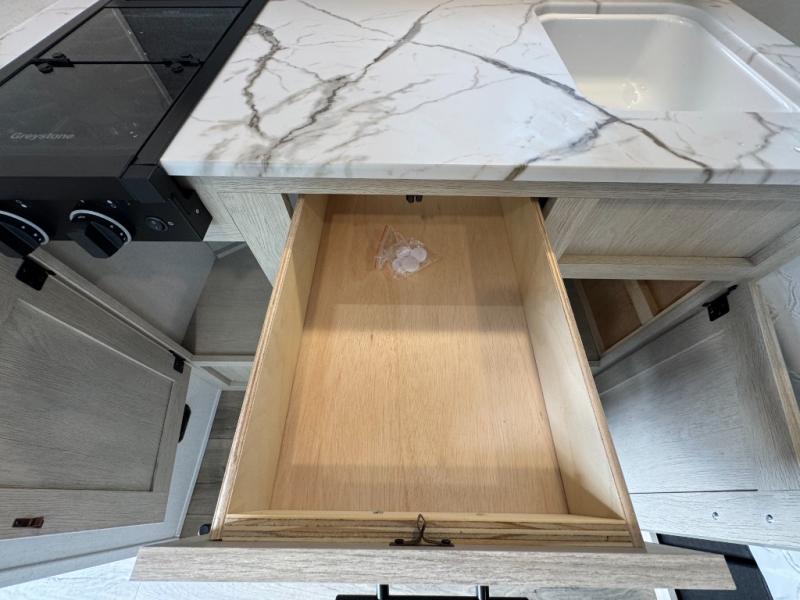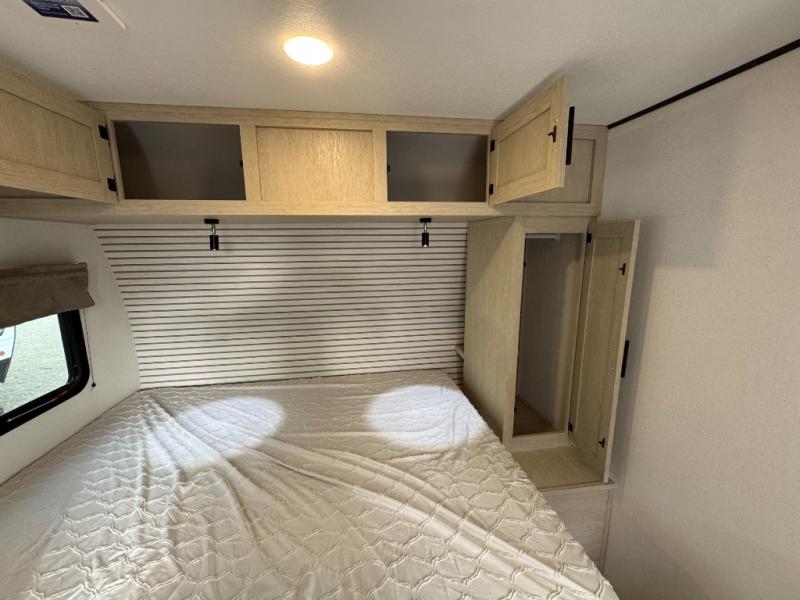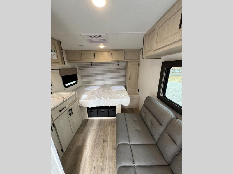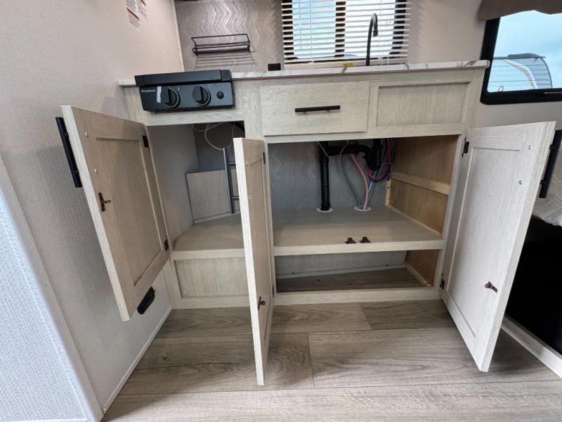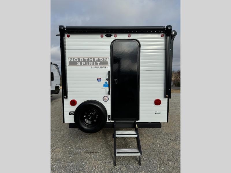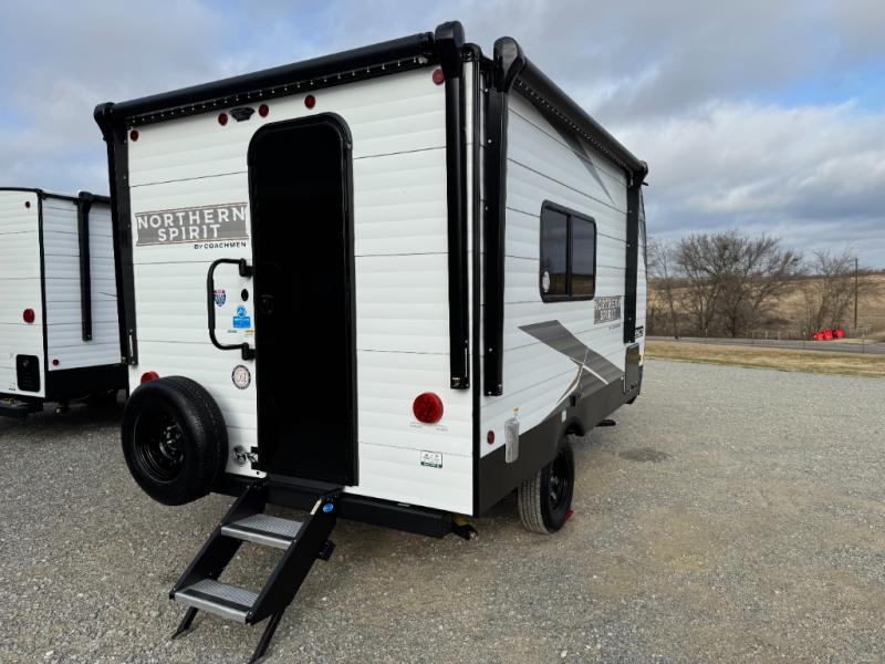 With any Northern Spirit Compact travel trailer by Coachmen, you will enjoy the camping lifestyle in an easy-to-tow, lightweight unit! Each model includes R-7 Fiberglass Insulation in all walls, floors and roof to help with temperature control in your travel trailer and an optional power tongue jack can be added for more convenience. You will appreciate having a tankless water heater for endless hot showers, an 8K BTU A/C to keep you cool, plus being pre-wired for solar & a 30AMP controller. The interior of each travel trailer includes decorative backsplash, under bed storage with baskets, a Bluetooth portable speaker, plus motion sensor lights.