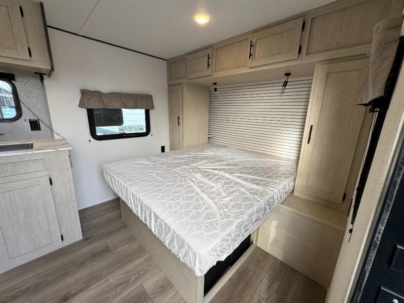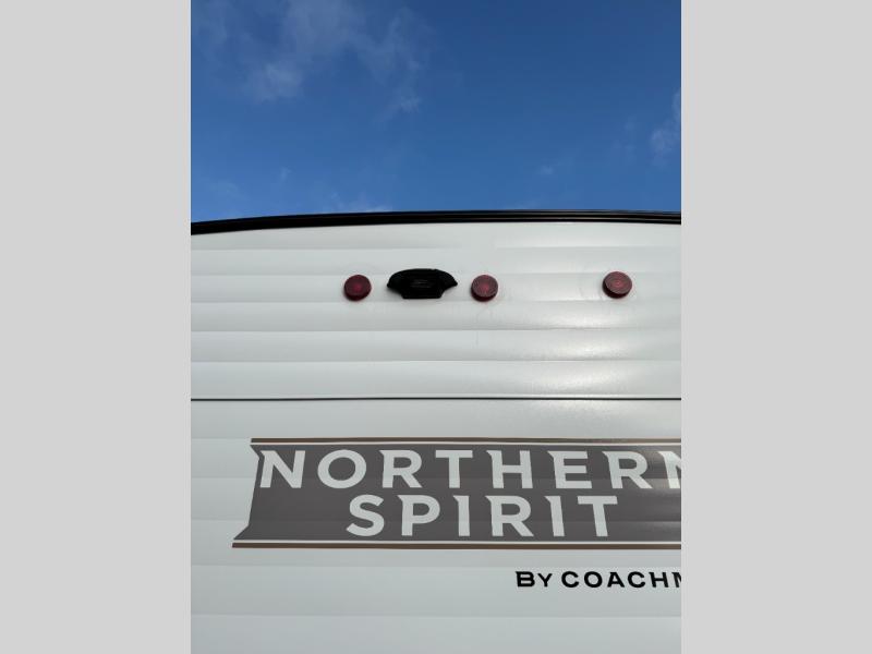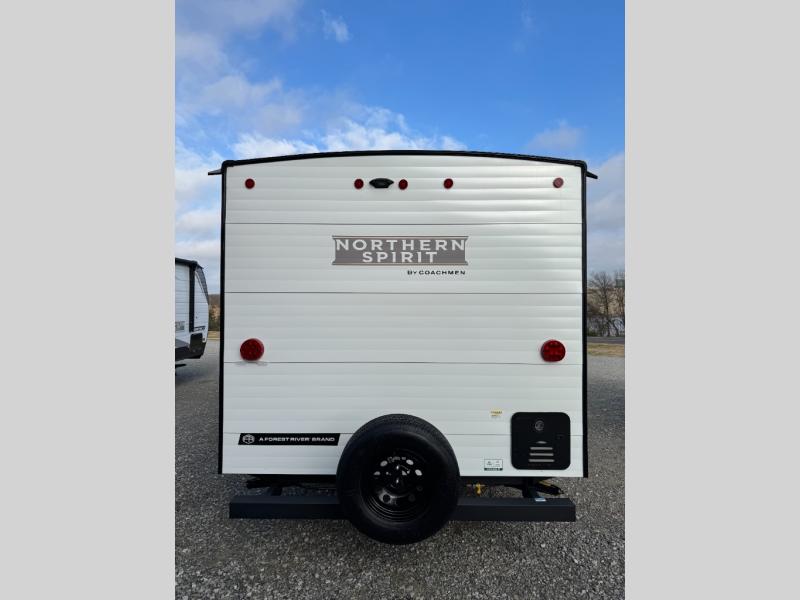 With any Northern Spirit Compact travel trailer by Coachmen, you will enjoy the camping lifestyle in an easy-to-tow, lightweight unit! Each model includes R-7 Fiberglass Insulation in all walls, floors and roof to help with temperature control in your travel trailer and an optional power tongue jack can be added for more convenience. You will appreciate having a tankless water heater for endless hot showers, an 8K BTU A/C to keep you cool, plus being pre-wired for solar & a 30AMP controller. The interior of each travel trailer includes decorative backsplash, under bed storage with baskets, a Bluetooth portable speaker, plus motion sensor lights.