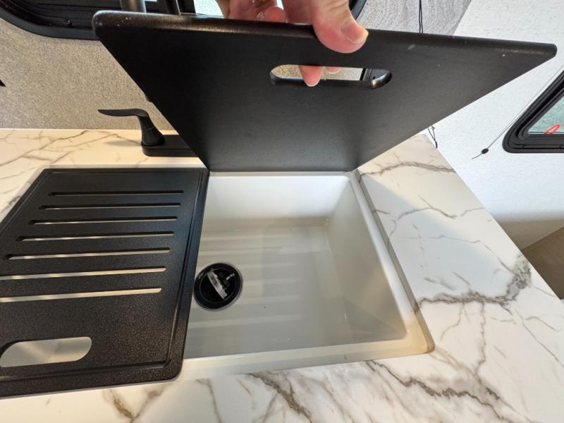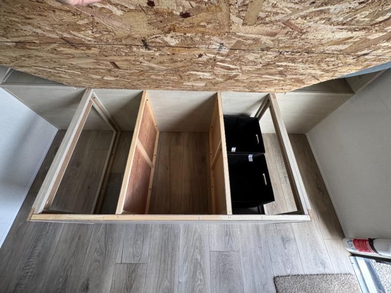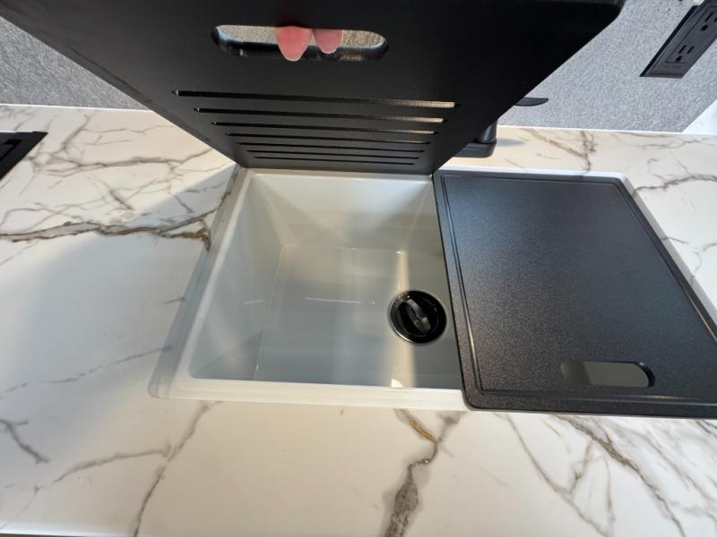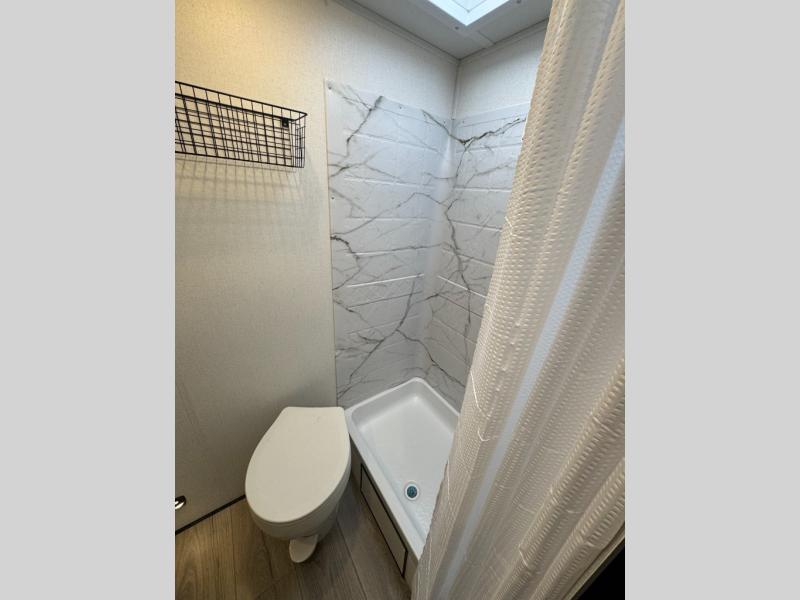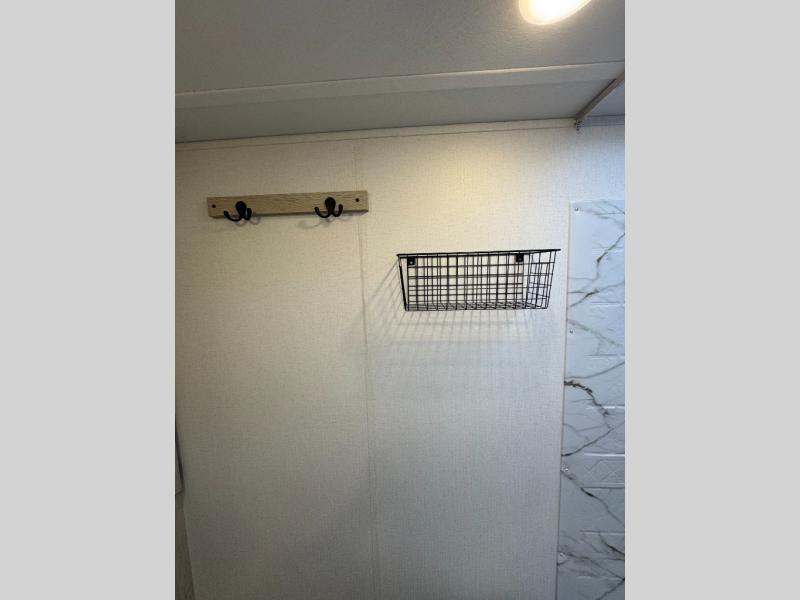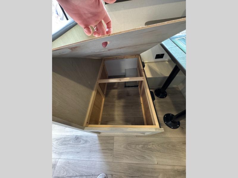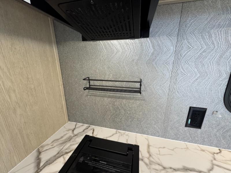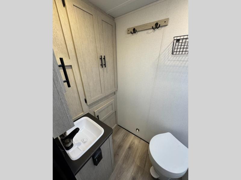 This travel trailer will feel just like home since there is a front bedroom with a Queen bed, dual wardrobes to keep your clothes tidy, plus a spacious full rear bath. There is a spacious shower, plus a medicine cabinet and a spacious bath linen closet to keep clean towels close by. Head to the kitchen to prepare lunch on the cooktop or use the microwave cabinet to heat up leftovers. There is a booth dinette where you can dine together and even let an overnight guest or two little ones sleep on!