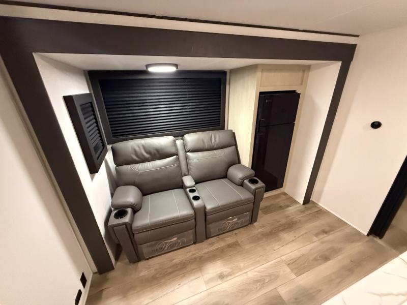 Beatiful rear bath couples coach with theater seating and HUGE bathroom with his/her sinks