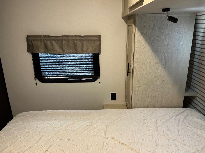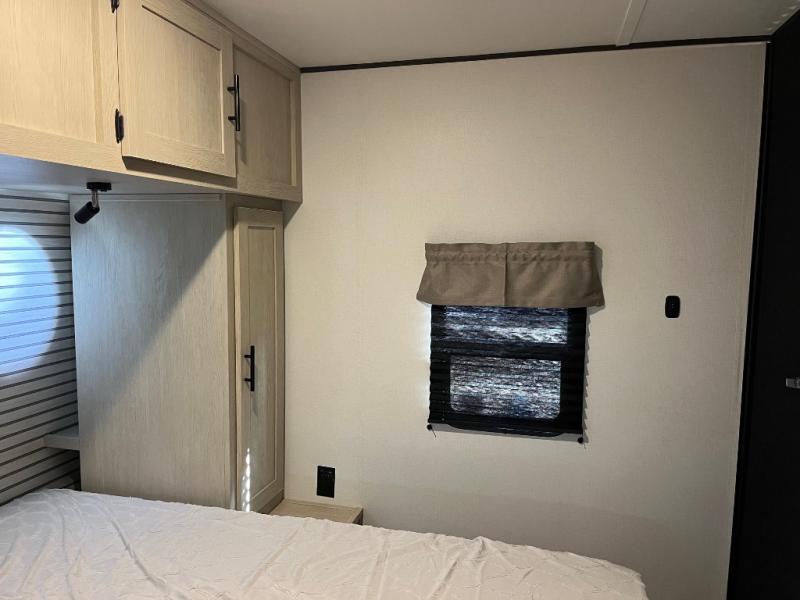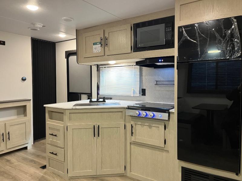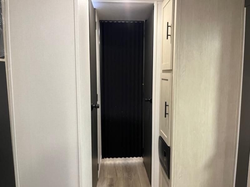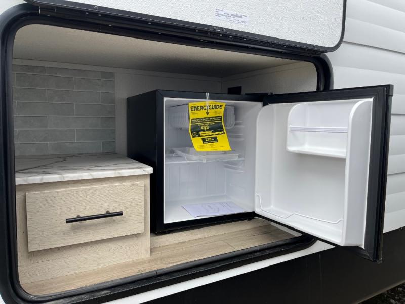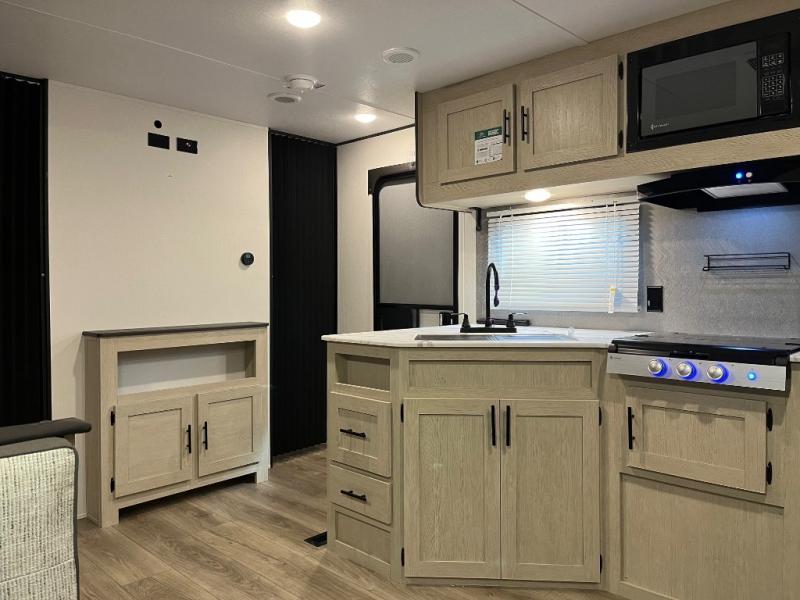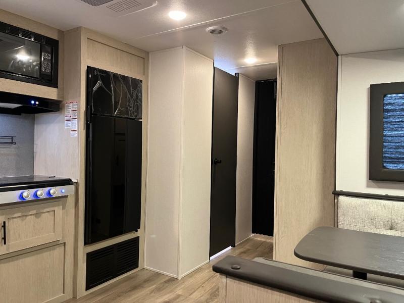 There are a set of 38" x 74" bunks and a set of 26" x 74" bunks in this trailer for lots of sleeping space! This bunkroom also includes a slide out for more space, and you can choose the optional double suite with a 54" x 74" bed if you don't need the bunks. The kitchen is fully equipped for your camping trips featuring a three burner cooktop, an overhead microwave oven, a large sink, and plenty of storage space. You will also love the pantry for all of your canned goods and snacks. The bath features a 24" x 40" shower, toilet, and vanity/sink. In the front of this unit, a private bedroom provides a quiet retreat from the rest of the unit with dual entry doors, and you'll appreciate having dual bedroom wardrobes to keep your clothes organized. Outside, enjoy pass-through storage for all of your outdoor camping gear plus more.