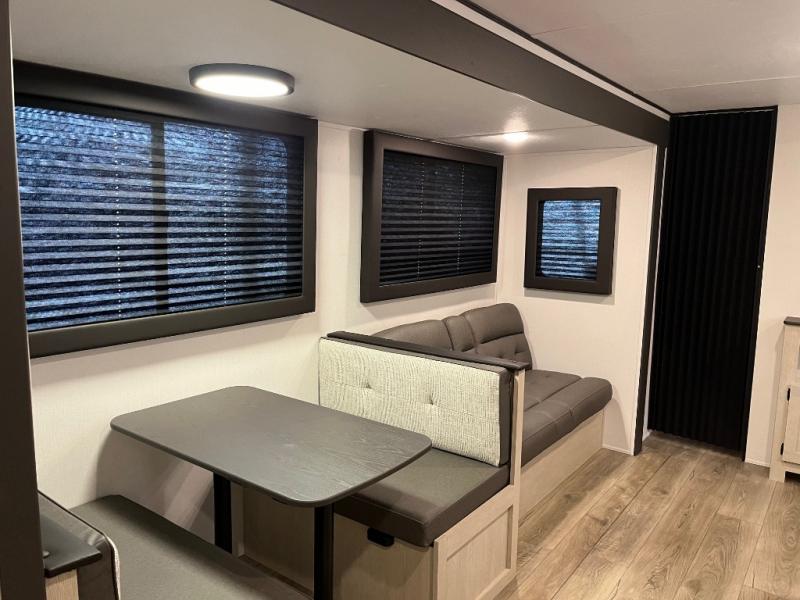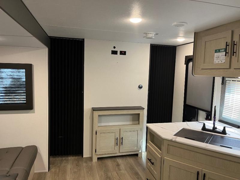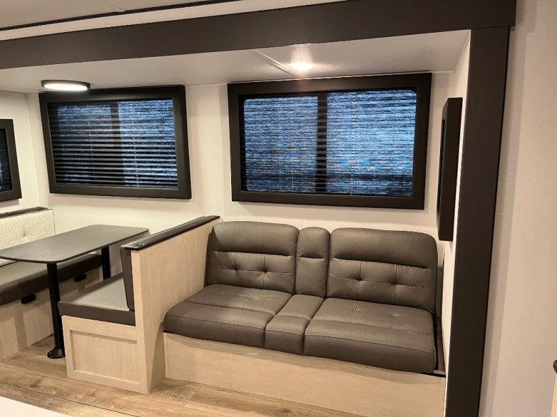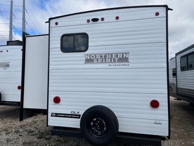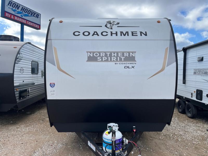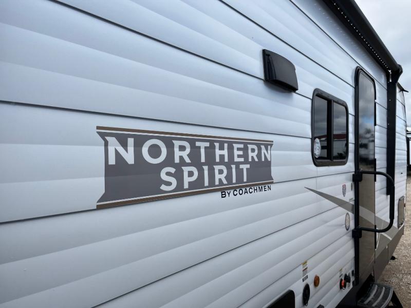 In any Northern Spirit DLX travel trailer by Coachmen, you will find quality craftsmanship along with an affordable price tag. These units each feature a straight axle with electric breaks to make setting up easier and an enclosed underbelly for added protection as you travel. The Base Camp Package provides each unit with black tank flush, a monitor panel for quick access to the functions of your unit, a 13.5K A/C unit, and a tankless water heater for added convenience. Inside, you'll find USB charging stations throughout, skylights, LED interior lights and more comforts!