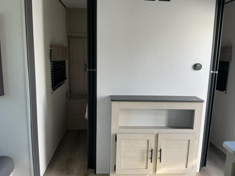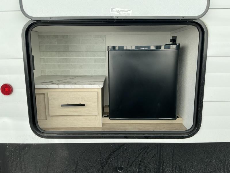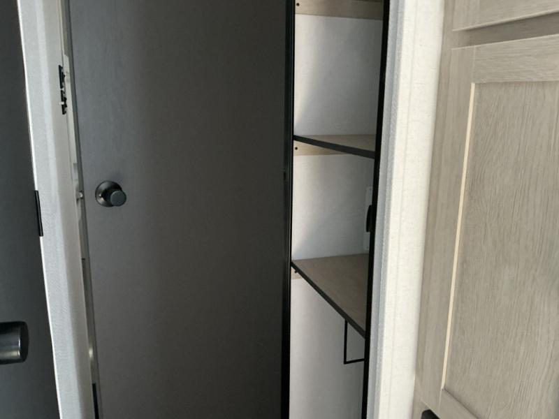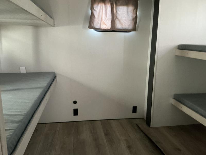 There are a set of 38" x 74" bunks and a set of 26" x 74" bunks in this trailer for lots of sleeping space! This bunkroom also includes a slide out for more space, and you can choose the optional double suite with a 54" x 74" bed if you don't need the bunks. The kitchen is fully equipped for your camping trips featuring a three burner cooktop, an overhead microwave oven, a large sink, and plenty of storage space. You will also love the pantry for all of your canned goods and snacks. The bath features a 24" x 40" shower, toilet, and vanity/sink. In the front of this unit, a private bedroom provides a quiet retreat from the rest of the unit with dual entry doors, and you'll appreciate having dual bedroom wardrobes to keep your clothes organized. Outside, enjoy pass-through storage for all of your outdoor camping gear plus more.