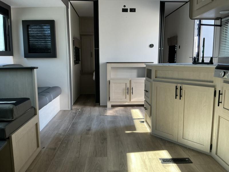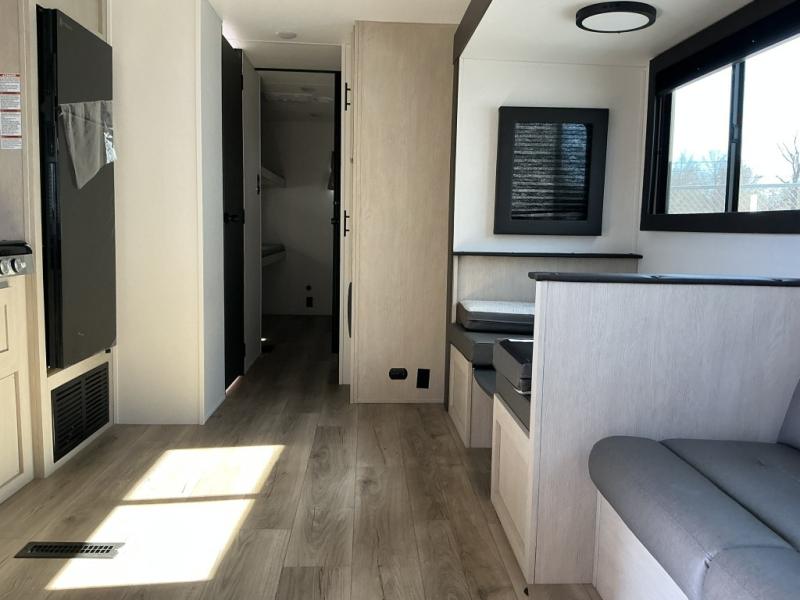 In any Northern Spirit DLX travel trailer by Coachmen, you will find quality craftsmanship along with an affordable price tag. These units each feature a straight axle with electric breaks to make setting up easier and an enclosed underbelly for added protection as you travel. The Base Camp Package provides each unit with black tank flush, a monitor panel for quick access to the functions of your unit, a 13.5K A/C unit, and a tankless water heater for added convenience. Inside, you'll find USB charging stations throughout, skylights, LED interior lights and more comforts!