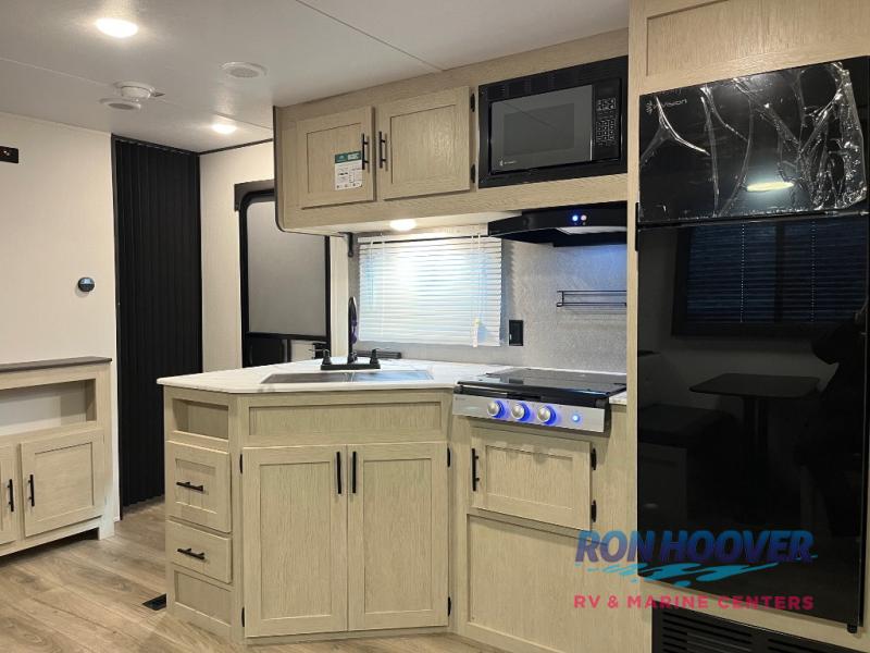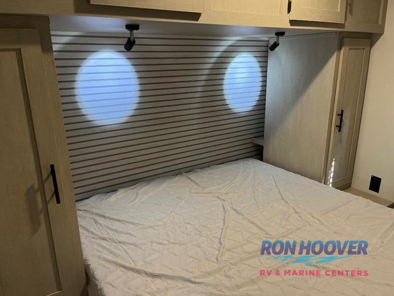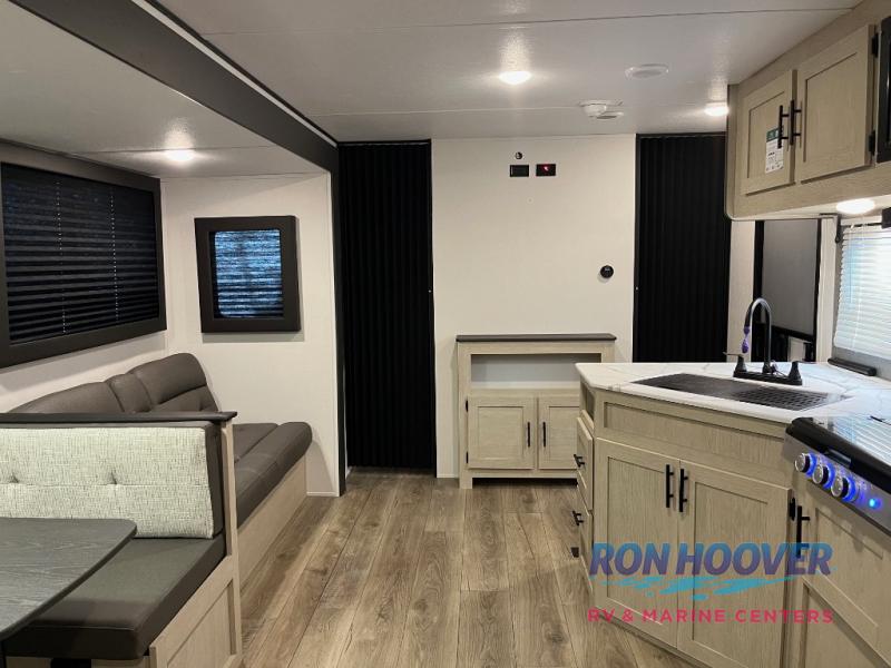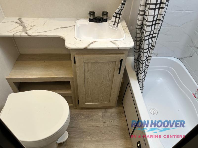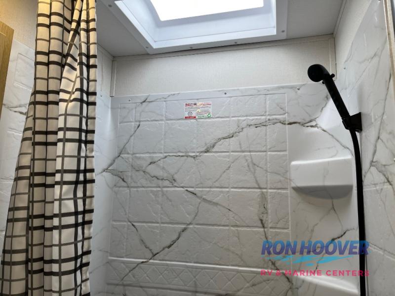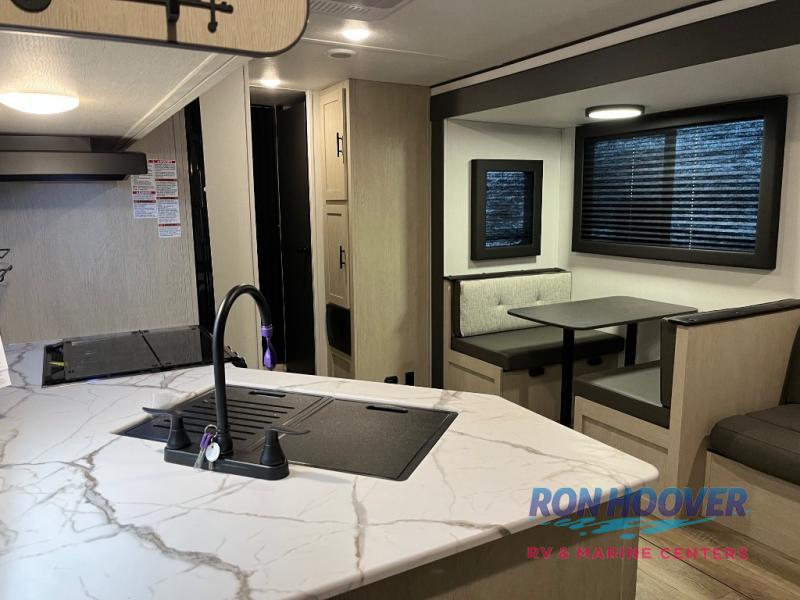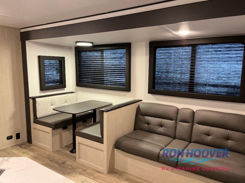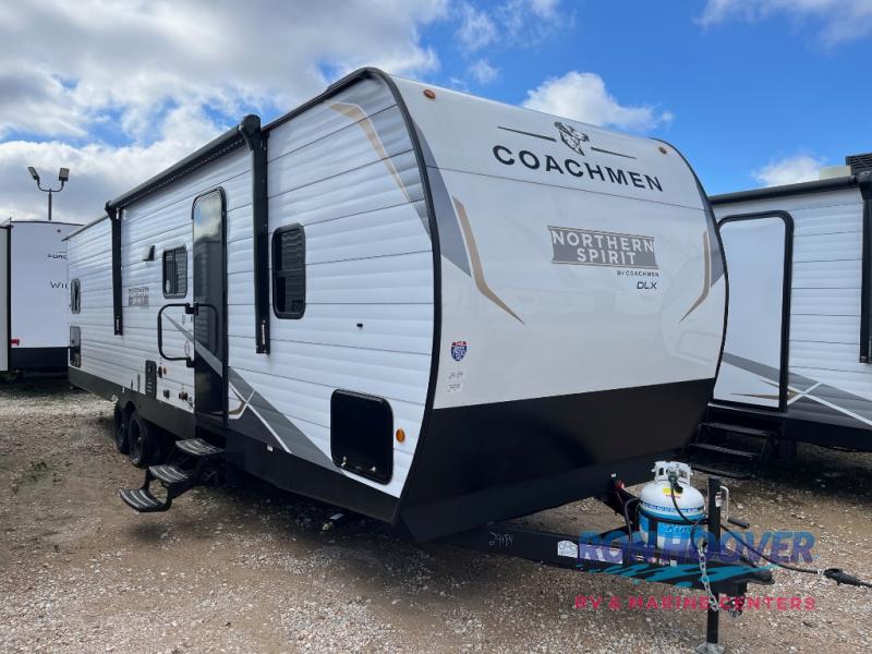 In any Northern Spirit DLX travel trailer by Coachmen, you will find quality craftsmanship along with an affordable price tag. These units each feature a straight axle with electric breaks to make setting up easier and an enclosed underbelly for added protection as you travel. The Base Camp Package provides each unit with black tank flush, a monitor panel for quick access to the functions of your unit, a 13.5K A/C unit, and a tankless water heater for added convenience. Inside, you'll find USB charging stations throughout, skylights, LED interior lights and more comforts!