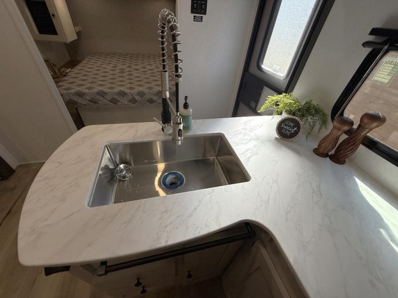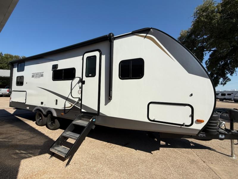 With any Northern Spirit SE travel trailer by Coachmen RV, you will enjoy affordable luxury at every turn! The durable construction includes dual Azdel sidewalls and rear wall, a Darco subfloor protective wrap/enclosure, plus a fully walkable roof with seamless Tufflex PVC covering. Each travel trailer includes Congoleum linoleum flooring, seamless Thermofoil countertops throughout, USB ports throughout to keep your gadgets charged, and night shades for added protection and privacy. And the on-demand tankless water heater, Twice Cool dual ducted A/C system, and 25,000 BTU ducted furnace will ensure your comfort wherever you decide to roam!