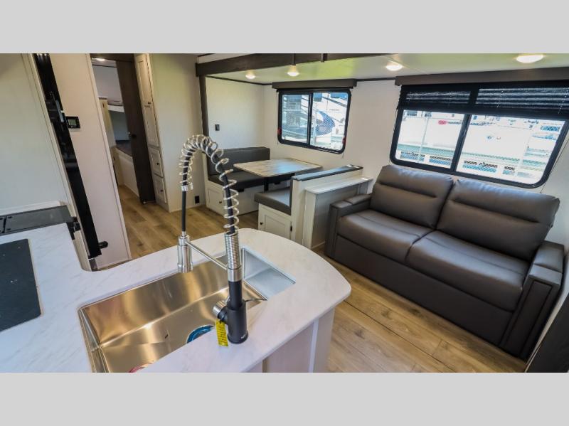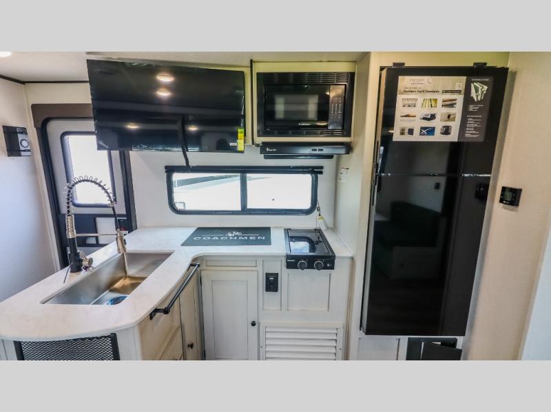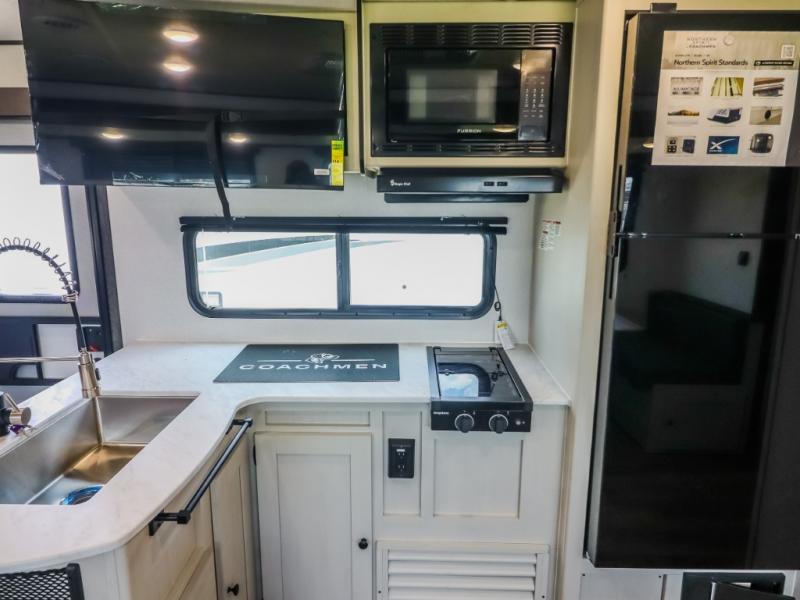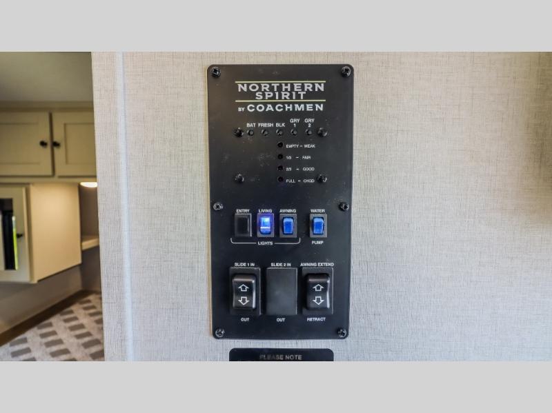 With any Northern Spirit SE travel trailer by Coachmen RV, you will enjoy affordable luxury at every turn! The durable construction includes dual Azdel sidewalls and rear wall, a Darco subfloor protective wrap/enclosure, plus a fully walkable roof with seamless Tufflex PVC covering. Each travel trailer includes Congoleum linoleum flooring, seamless Thermofoil countertops throughout, USB ports throughout to keep your gadgets charged, and night shades for added protection and privacy. And the on-demand tankless water heater, Twice Cool dual ducted A/C system, and 25,000 BTU ducted furnace will ensure your comfort wherever you decide to roam!