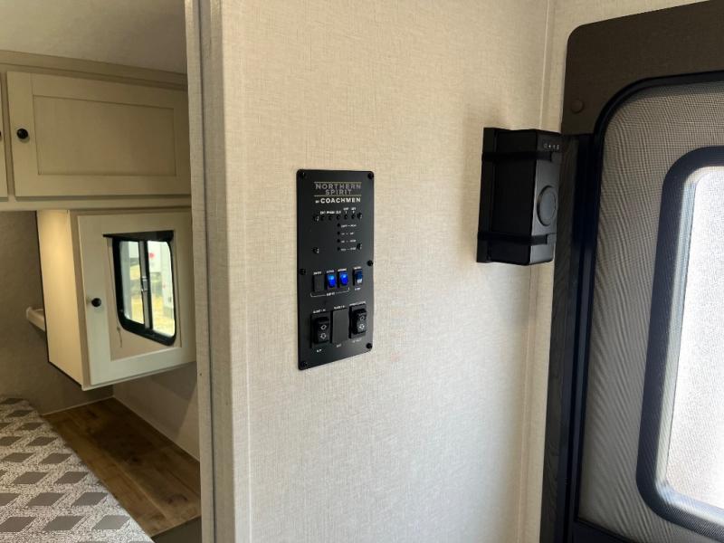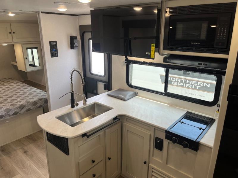 With any Northern Spirit SE travel trailer by Coachmen RV, you will enjoy affordable luxury at every turn! The durable construction includes dual Azdel sidewalls and rear wall, a Darco subfloor protective wrap/enclosure, plus a fully walkable roof with seamless Tufflex PVC covering. Each travel trailer includes Congoleum linoleum flooring, seamless Thermofoil countertops throughout, USB ports throughout to keep your gadgets charged, and night shades for added protection and privacy. And the on-demand tankless water heater, Twice Cool dual ducted A/C system, and 25,000 BTU ducted furnace will ensure your comfort wherever you decide to roam!