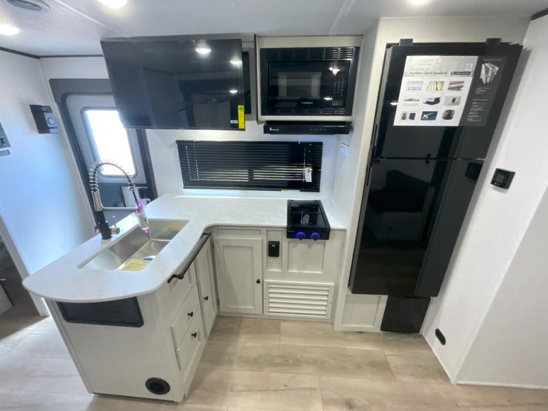 With any Northern Spirit SE travel trailer by Coachmen RV, you will enjoy affordable luxury at every turn! The durable construction includes dual Azdel sidewalls and rear wall, a Darco subfloor protective wrap/enclosure, plus a fully walkable roof with seamless Tufflex PVC covering. Each travel trailer includes Congoleum linoleum flooring, seamless Thermofoil countertops throughout, USB ports throughout to keep your gadgets charged, and night shades for added protection and privacy. And the on-demand tankless water heater, Twice Cool dual ducted A/C system, and 25,000 BTU ducted furnace will ensure your comfort wherever you decide to roam!