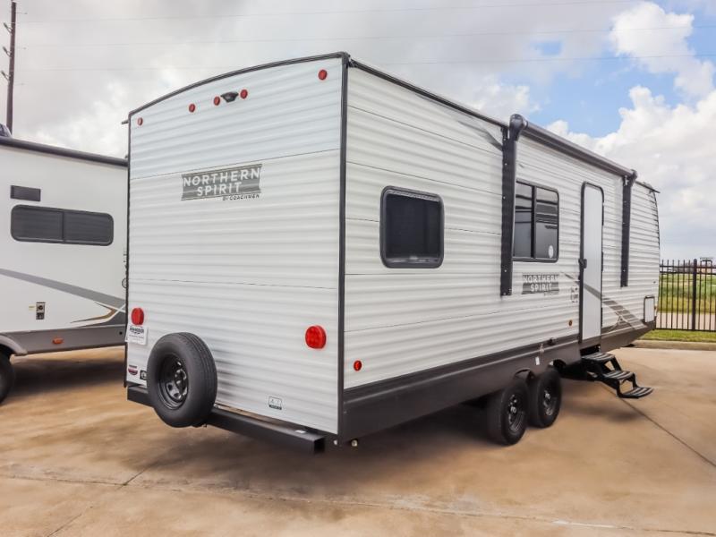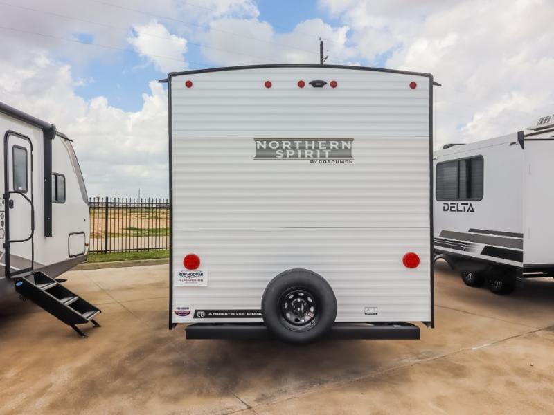With any Northern Spirit SE travel trailer by Coachmen RV, you will enjoy affordable luxury at every turn! The durable construction includes dual Azdel sidewalls and rear wall, a Darco subfloor protective wrap/enclosure, plus a fully walkable roof with seamless Tufflex PVC covering. Each travel trailer includes Congoleum linoleum flooring, seamless Thermofoil countertops throughout, USB ports throughout to keep your gadgets charged, and night shades for added protection and privacy. And the on-demand tankless water heater, Twice Cool dual ducted A/C system, and 25,000 BTU ducted furnace will ensure your comfort wherever you decide to roam!
