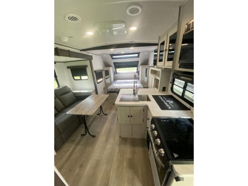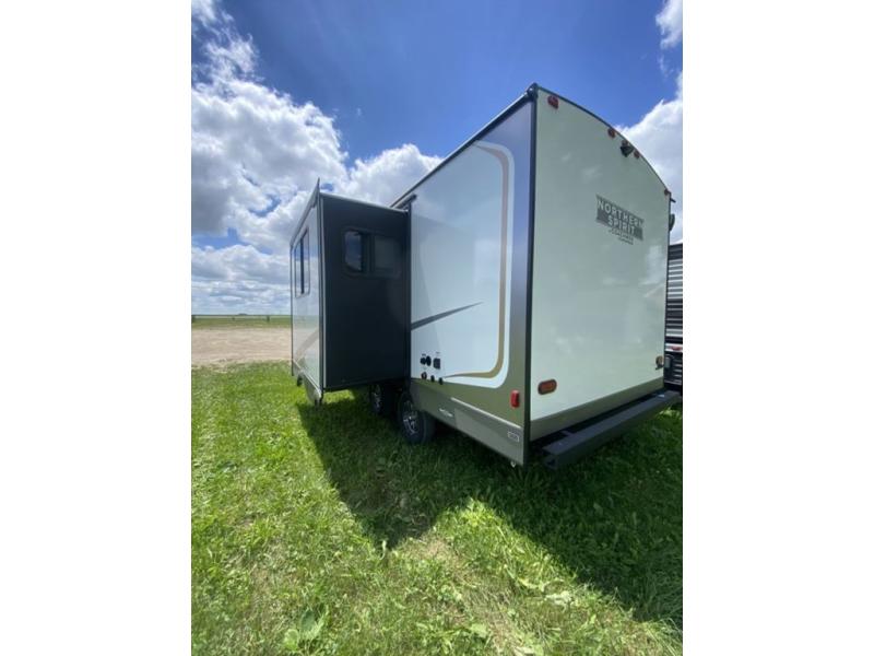 With any Northern Spirit Ultra Lite travel trailer by Coachmen, the "Twice Cool" dual ducted air conditioning system, motion activated floor lights, and the motion activated pass-through storage light plus fishing pole storage, will make your camping experience simplified. The heated and enclosed underbelly provides protection on the road, the 200W solar panel with 30 amp controller provides off-grid camping, and the power tongue jack makes setup easier. Each is built with a front cap with LED strip lights, a laminated, aluminum framed floor, rear wall, and sidewalls, plus a fully walkable roof with seamless Tufflex PVC covering. Make your decision today, and camp with everything in its place!