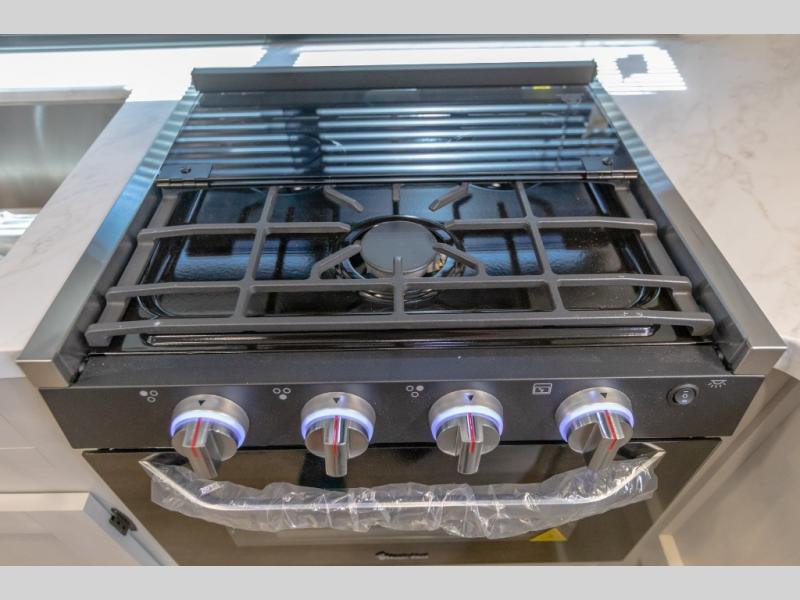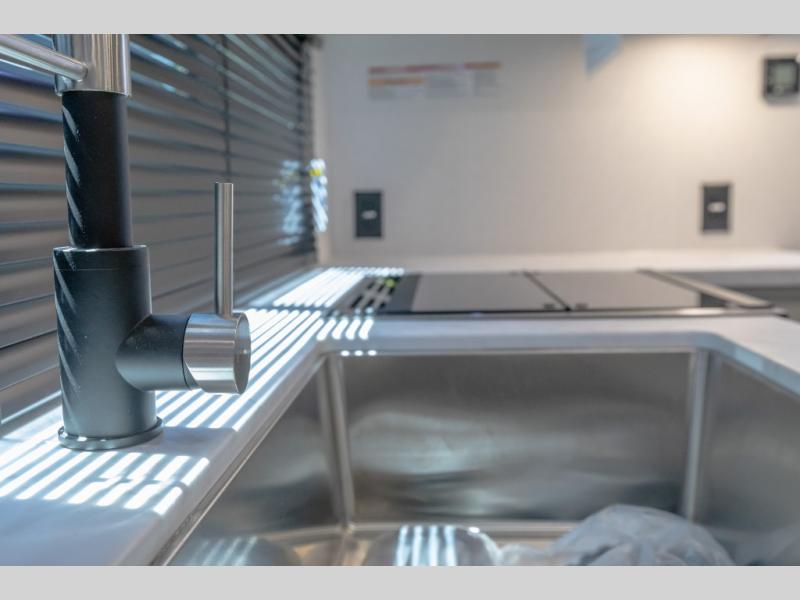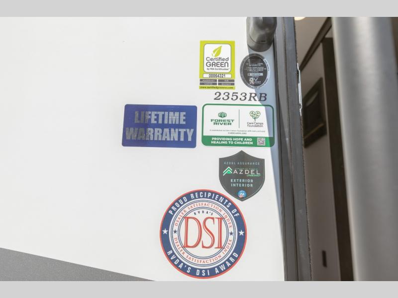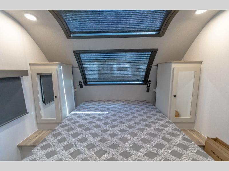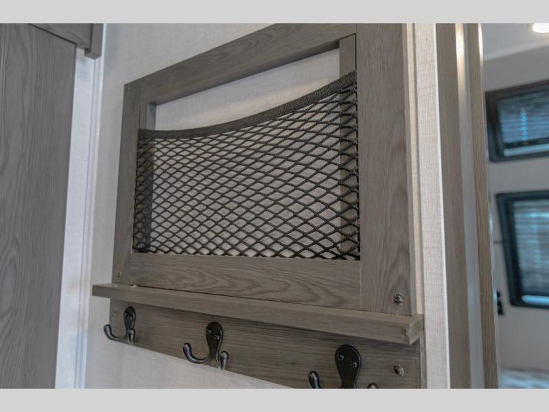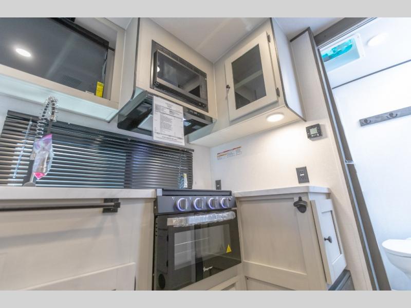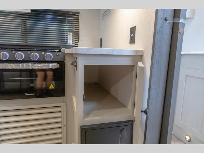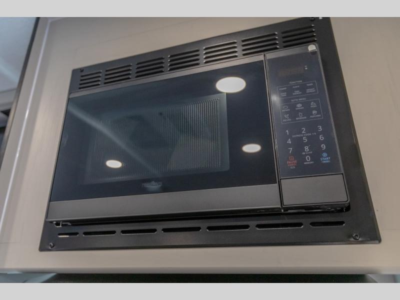 This travel trailer is the perfect match for a couple. It offers comfort and space thanks to the queen size bed with storage below, dual wardrobes and night stands beside the bed. Spend days of fun with the entertainment center which has a 40"TV and theater seats. Also, the rear bathroom is perfect to take a shower after a long day of adventures.